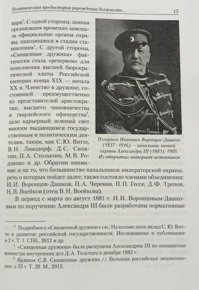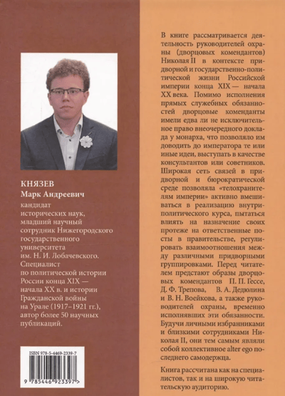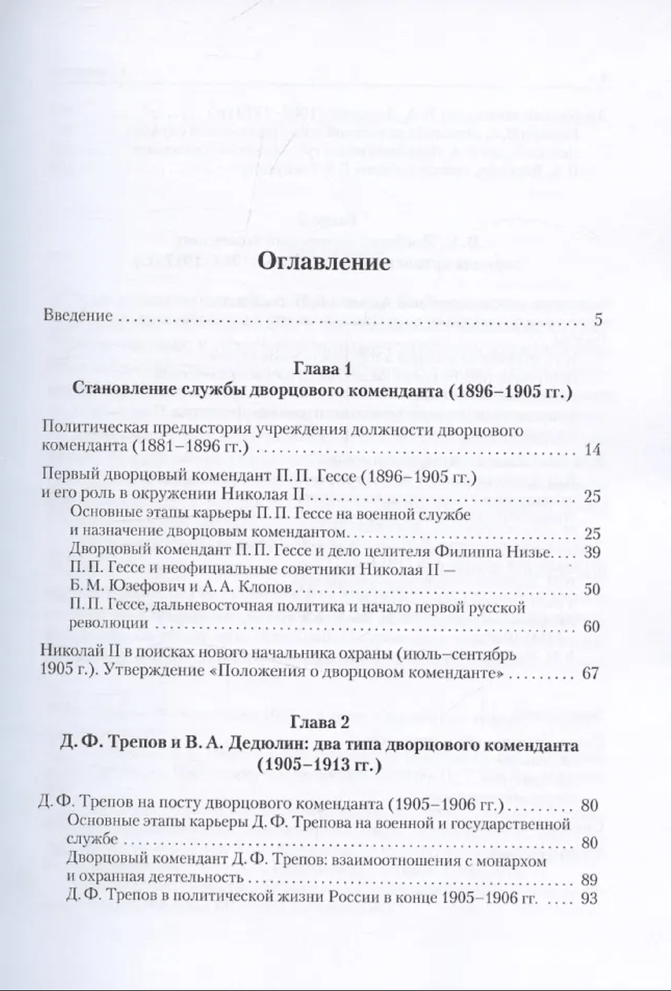 В книге рассматривается деятельность руководителей охраны (дворцовых комендантов) Николая II в контексте придворной и государственно-политической жизни Российской империи конца XIX — начала XX века. Помимо исполнения прямых служебных обязанностей дворцовые коменданты имели едва ли не исключительное право внеочередного доклада у монарха, что позволяло им доводить до императора те или иные идеи, выступать в качестве консультанта или советника. Широкая сеть связей в придворной и бюрократической среде позволяла «телохранителям империи» активно вмешиваться в реализацию внутриполитического курса, пытаться влиять на назначение своих протеже на ответственные посты в правительстве, регулировать взаимоотношения между различными придворными группировками. Перед читателем предстают образы дворцовых комендантов П. П. Гессе, Д. Ф. Трепова, В. А. Дедюлина и В. Н. Воейкова, а также руководителей охраны, временно исполнявших эти обязанности. Будучи личными избранниками и близкими сотрудниками Николая II, они тем самым являли собой коллективное alter ego последнего самодержца.