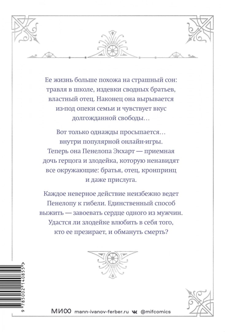 Это история девушки, которая становится сильной в невероятных обстоятельствах. Она живет обычной жизнью, сталкивается с проблемами, которые знакомы каждому: непонимание со стороны родителей, любовные переживания, одиночество. Пока однажды не просыпается Пенелопой Экхарт, главной злодейкой в популярной онлайн-игре - сильной, дерзкой и принципиальной. Все вокруг ее ненавидят, считают ничтожеством и желают смерти. Каждое неверное слово или поступок девушки – риск. Чтобы выжить, ей нужно завоевать симпатию одного из мужских персонажей. Однако это совсем не просто, ведь все они настроены против Пенелопы. Удастся ли ей обмануть саму смерть?