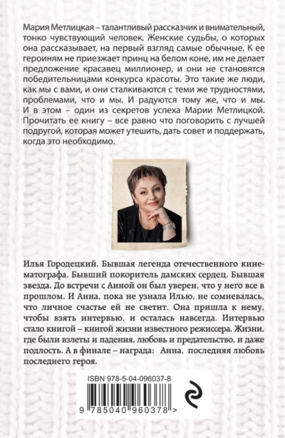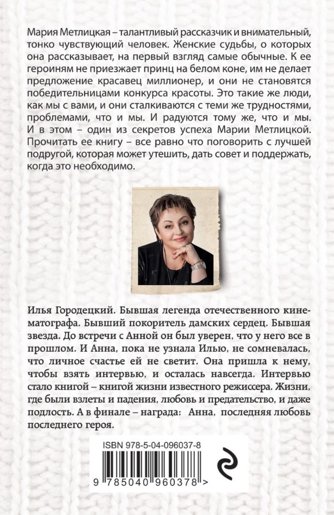 Она пришла к нему, чтобы взять интервью и осталась навсегда. Интервью стало книгой - книгой жизни известного режиссера. Жизни, где были взлеты и падения, любовь и предательство, и даже подлость. А в финале - награда: Анна, последняя любовь последнего героя.