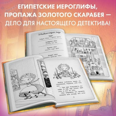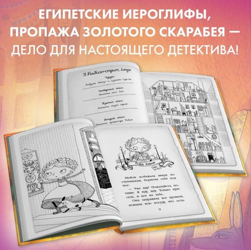 Папа Мейзи – моряк, все время в плаваниях, и девочка очень давно его не видела. Папа не забывает свою дочку, вот и сейчас прислал подарок, ожерелье с подвеской. Подвеска покрыта загадочными египетскими иероглифами, и Мейзи, как начинающему детективу, не терпится расшифровать надпись. Разумеется, тут требуется помощь знатока. Но у крупнейшего ученого по Древнему Египту своя беда – пропал золотой скарабей, гордость его коллекции. «Так это целых два египетских ребуса!» – обрадовалась девочка и с жаром принялась за эти загадки.