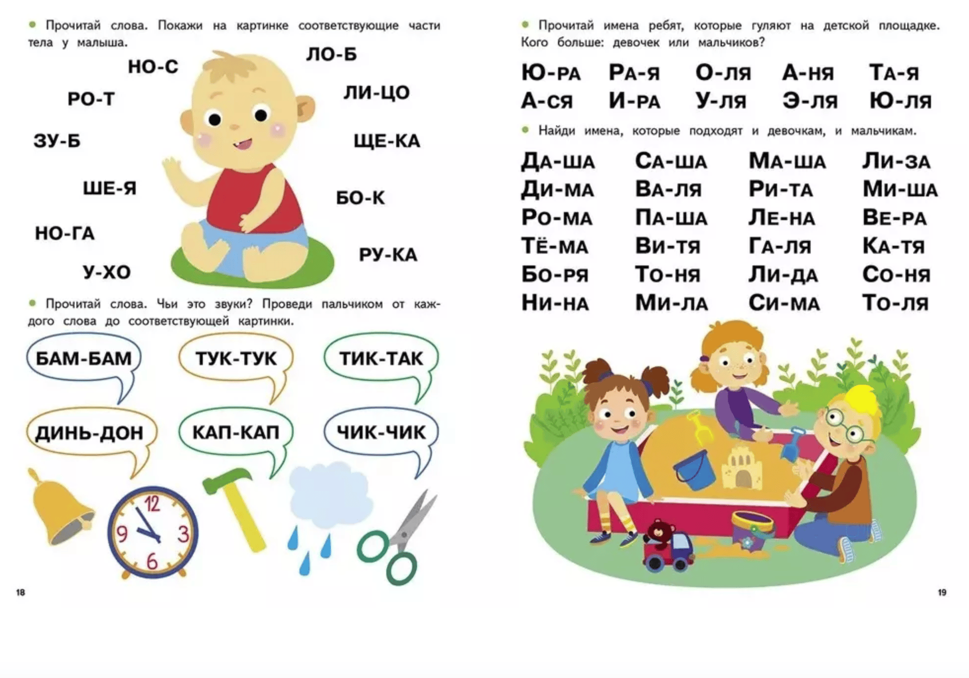 Пособие предназначено для детей, хорошо знающих буквы. После закрепления навыка чтения складов ребенку предлагается чтение слов - от самых коротких и простых до более сложных, затем чтение предложений и небольших текстов.