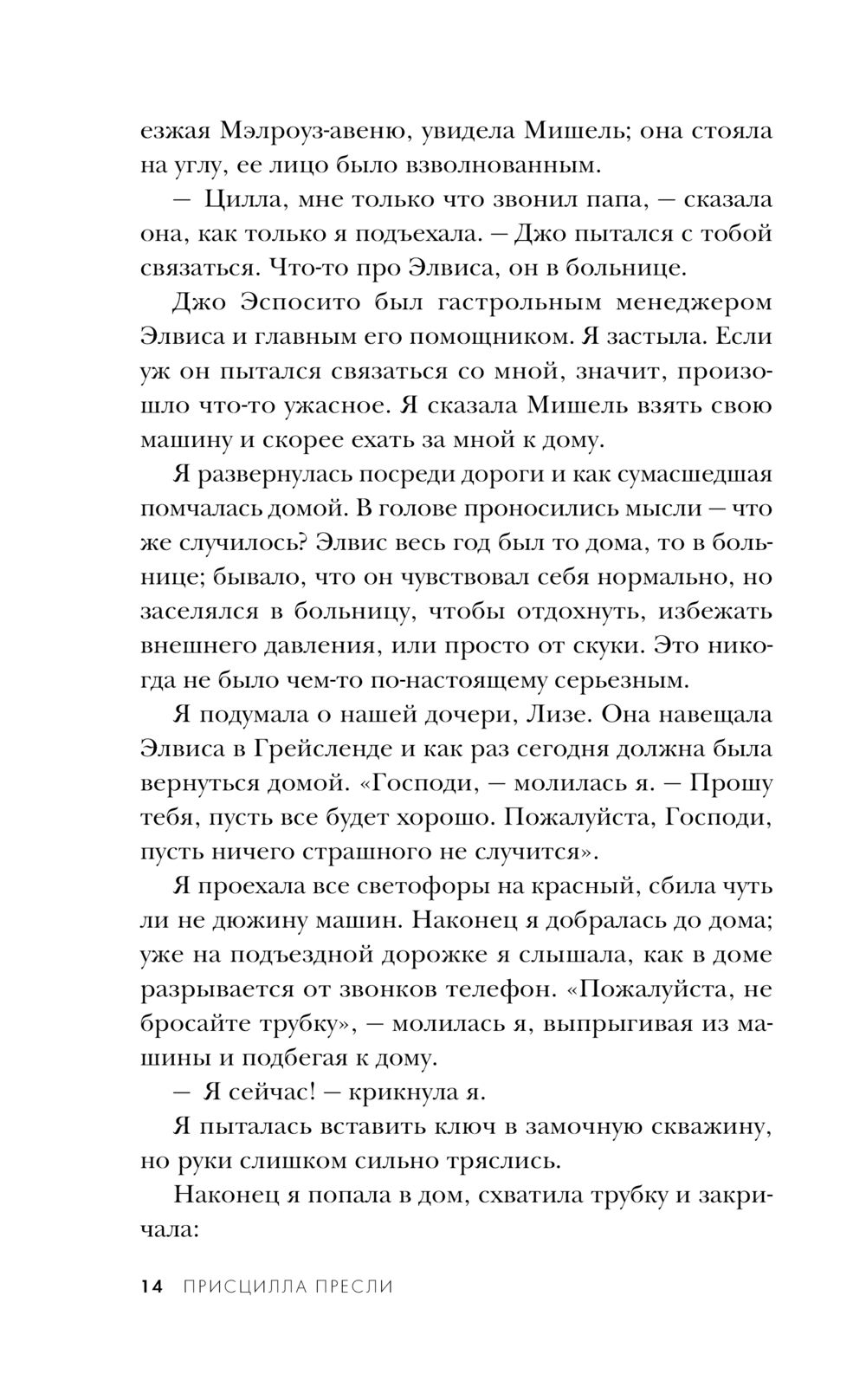 Впервые ее собственными словами Присцилла рассказывает историю их с Элвисом любви, раскрывая подробности их романа, противоречивого и сложного брака, развода и неразрывной связи, которая сохранилась даже после его трагической смерти. Посвященная и человеку, и легенде, книга «Элвис и я» предоставляет уникальный взгляд на настоящую жизнь короля рок-н-ролла и женщины, любившей его, несмотря ни на что.