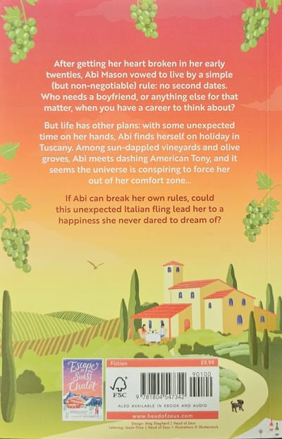 But life has other plans: with some unexpected time on her hands, Abi finds herself on holiday in Tuscany. Among sun-dappled vineyards and olive groves, Abi meets dashing American Tony, and it seems the universe is conspiring to force her out of her comfort zone...