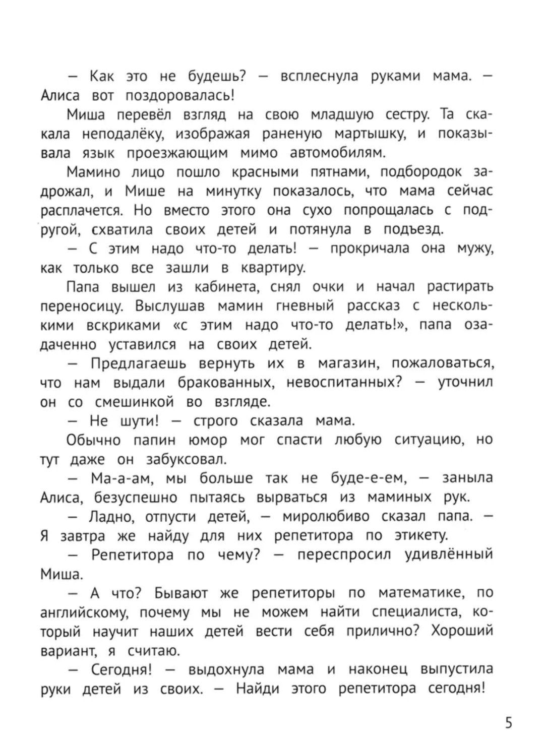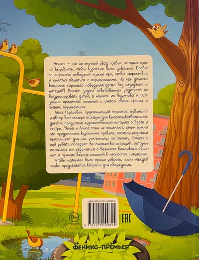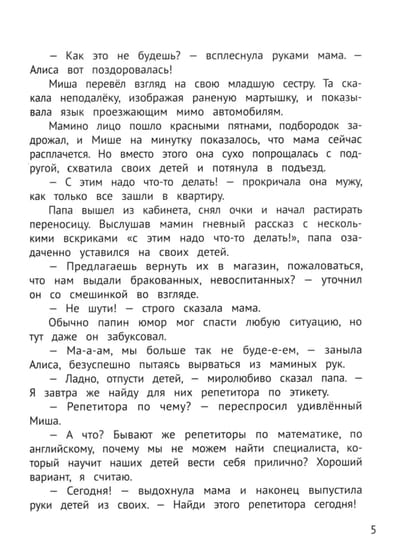 Лёля Тарасевич, практикующий психолог, публицист и автор бестселлера «Сказки для высокочувствительных детей», придумала художественную историю о брате и сестре. Миша и Алиса тоже не понимают, зачем нужны придуманные взрослыми правила, поэтому родители приглашают для них учительницу по этикету. Вместе с ней ребята попадают во множество ситуаций, которые помогают им задуматься о важности вежливого общения и принять верные решения в непростых ситуациях.