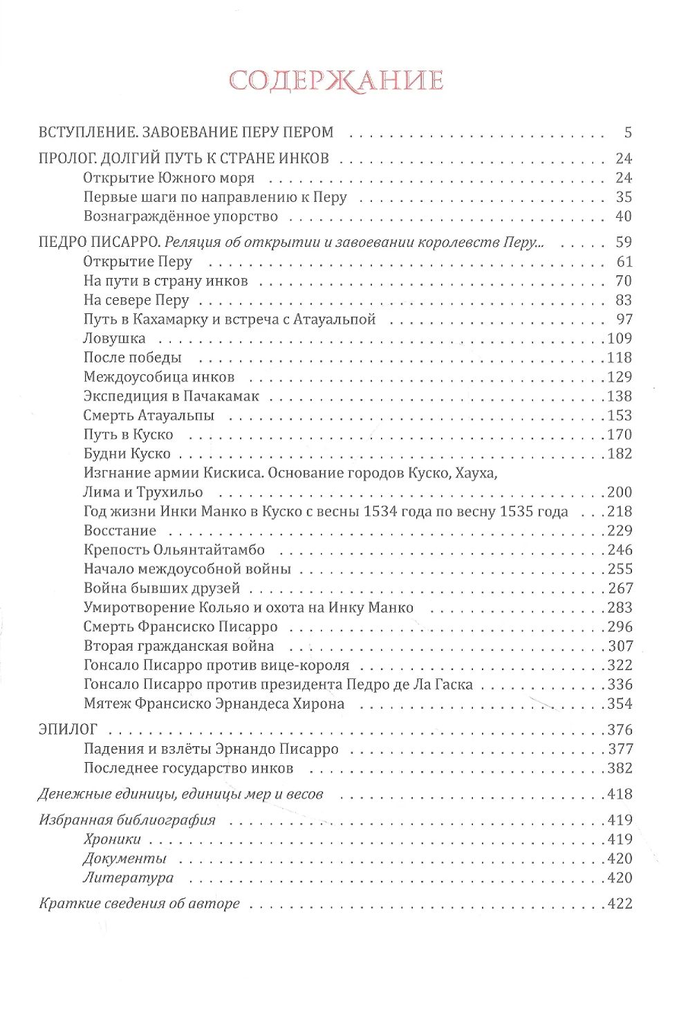 Особенность предлагаемой книги состоит в том, что в ней раннеколониальная история Перу излагается самими участниками событий. Основой книги послужила пространная и очень живая хроника, написанная кузеном Франсиско Писарро Педро Писарро, которого завоеватель Перу взял своим пажом. Эта хроника сопровождается фрагментами других текстов, которые либо существенно дополняют его, либо представляют другую точку зрения. В этом многоголосии будет слышен и голос переводчика, в данном случае выступающего в роли комментатора, чьи уточнения и пояснения приводятся на полях страницы. Переводные материалы обрамлены предисловием, где описана предыстория знаменитой экспедиции в Перу, и эпилогом, в котором завершается жизненный путь одного из братьев Писарро и прослежена судьба Вилькабамбы, последнего оплота государства инков.