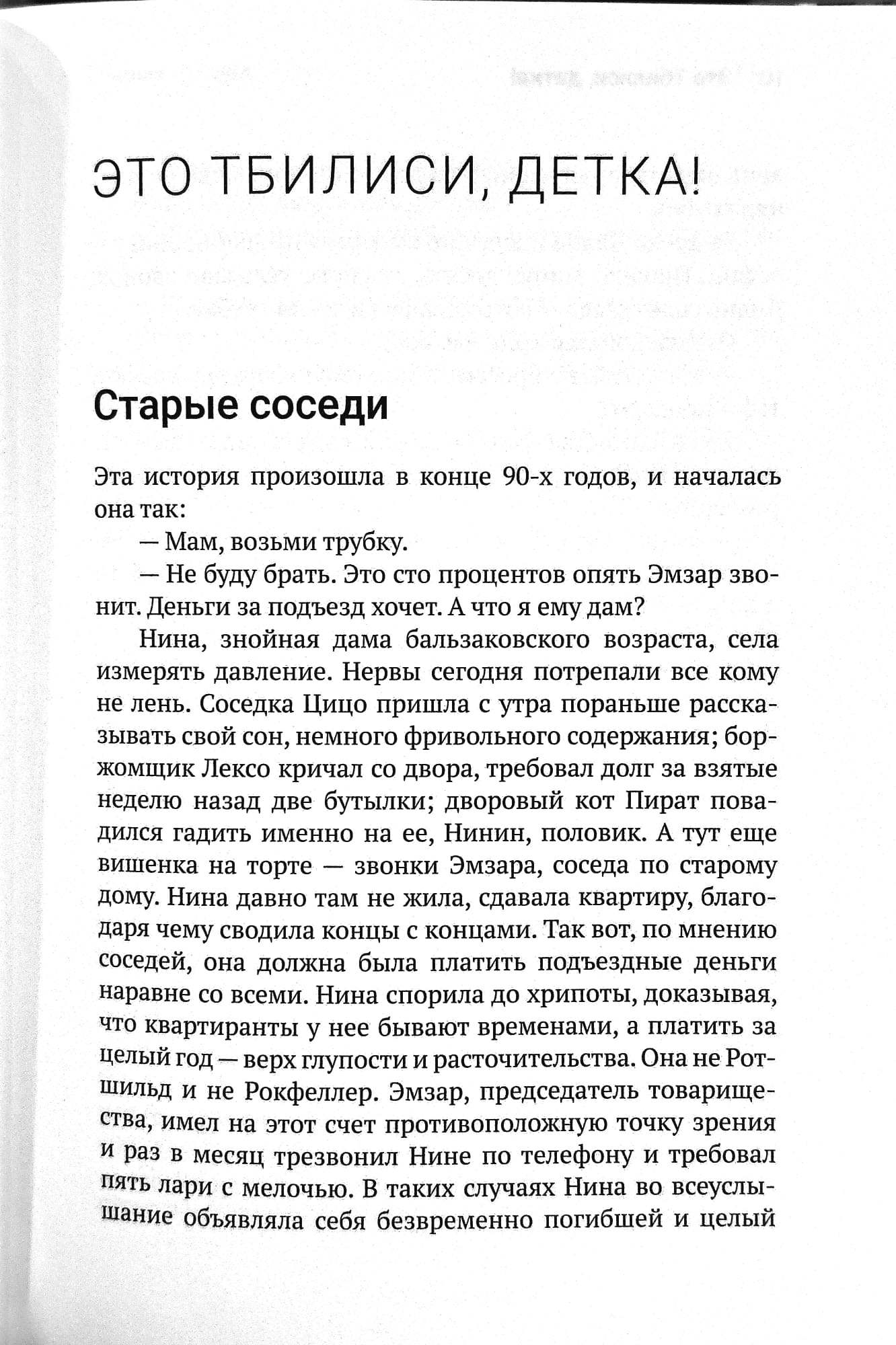 Рассказы Марии Сараджишвили непременно заставят читателя полюбить Грузию — страну экзотическую и в тоже время близкую по христианскому духу, широте души и сердечности. Вы окунетесь в густую атмосферу сегодняшнего Тбилиси: шумные рынки и дворики, где встречаются друзья-соседи, домашние трапезы и семейные скандалы, древние традиции и новая реальность, драматические перипетии и юмор органично сочетаются в прозе талантливой писательницы.