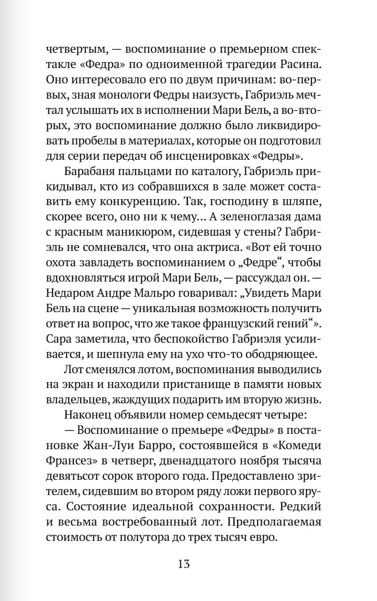 В мире, где обмениваются воспоминаниями благодаря революционному приложению «МемориПроджект», любитель театра Габриэль из современности попадает в 1942 год — на премьеру «Федры» на сцене Комеди Франсез. В зале он замечает зрительницу — та очаровывает его с первого взгляда. Герой влюбляется без памяти. Но возможно ли любить, когда вас разделяет более полувека? Необыкновенное путешествие по страницам памяти в поисках настоящей любви.