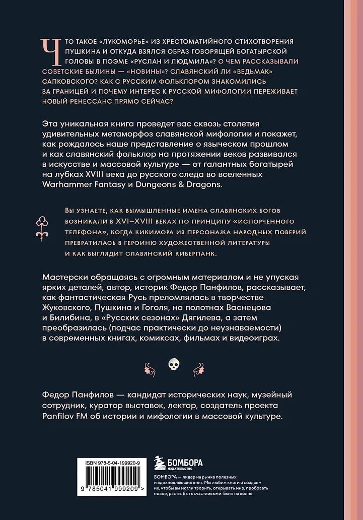 Мастерски обращаясь с огромным материалом и не упуская ярких деталей, автор, историк Федор Панфилов, убедительно показывает, что русская мифология вдохновляла и вдохновляет не только классическое искусство от литературы романтизма до Русских сезонов Дягилева, но и популярную массовую культуру, а наше прошлое — неисчерпаемый источник для фантазий о будущем.