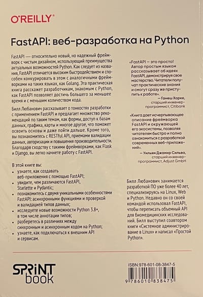 FastAPI — относительно новый, но надежный фреймворк с чистым дизайном, использующий преимущества актуальных возможностей Python. Как следует из названия, FastAPI отличается высоким быстродействием и способен конкурировать в этом с аналогичными фреймворками на таких языках, как Golang. Эта практическая книга расскажет разработчикам, знакомым с Python, как FastAPI позволяет достичь большего за меньшее время и с меньшим количеством кода.