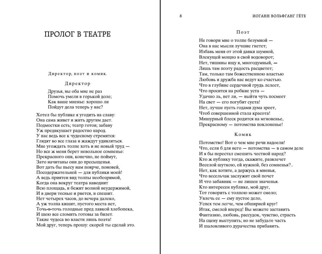 Великий Гёте задумал своего «Фауста», когда ему было немногим больше двадцати лет, а завершил трагедию за несколько месяцев до кончины. Это произведение стало итогом философских и художественных исканий автора — поэта, драматурга, прозаика, крупнейшего ученого своего времени, человека энциклопедических познаний. Герой трагедии доктор Иоганн Фауст жил в первой половине XVI века и слыл магом и чернокнижником, который, отвергнув современную науку и религию, продал душу дьяволу. О Фаусте ходили устные легенды, он был героем театральных представлений, к его образу обращались авторы — Г. Р. Видман, К. Марло, Ф. М. Клингер, Г. Э. Лессинг и другие. Под пером Гёте история о Фаусте, посвященная вечным темам познания жизни и трудности человеческого пути, стала одной из вершин мировой литературы.