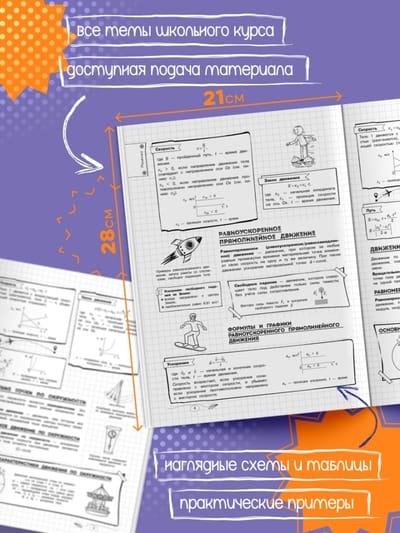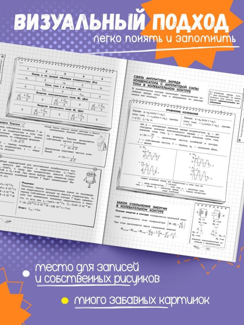 Благодаря наглядной подаче теории с примерами, схемами, а также забавными рисунками, текст становится доступным и интересным. Визуальный подход обеспечивает легкость восприятия и запоминания информации, ведь она оформлена в виде конспектов, словно ученик писал их сам. Всевозможные иллюстрации и места для собственных примеров и примечаний помогут сделать процесс обучения максимально простым и приятным! А при желании можно взять маркеры и сделать свой конспект еще более уникальным и персонализированным!