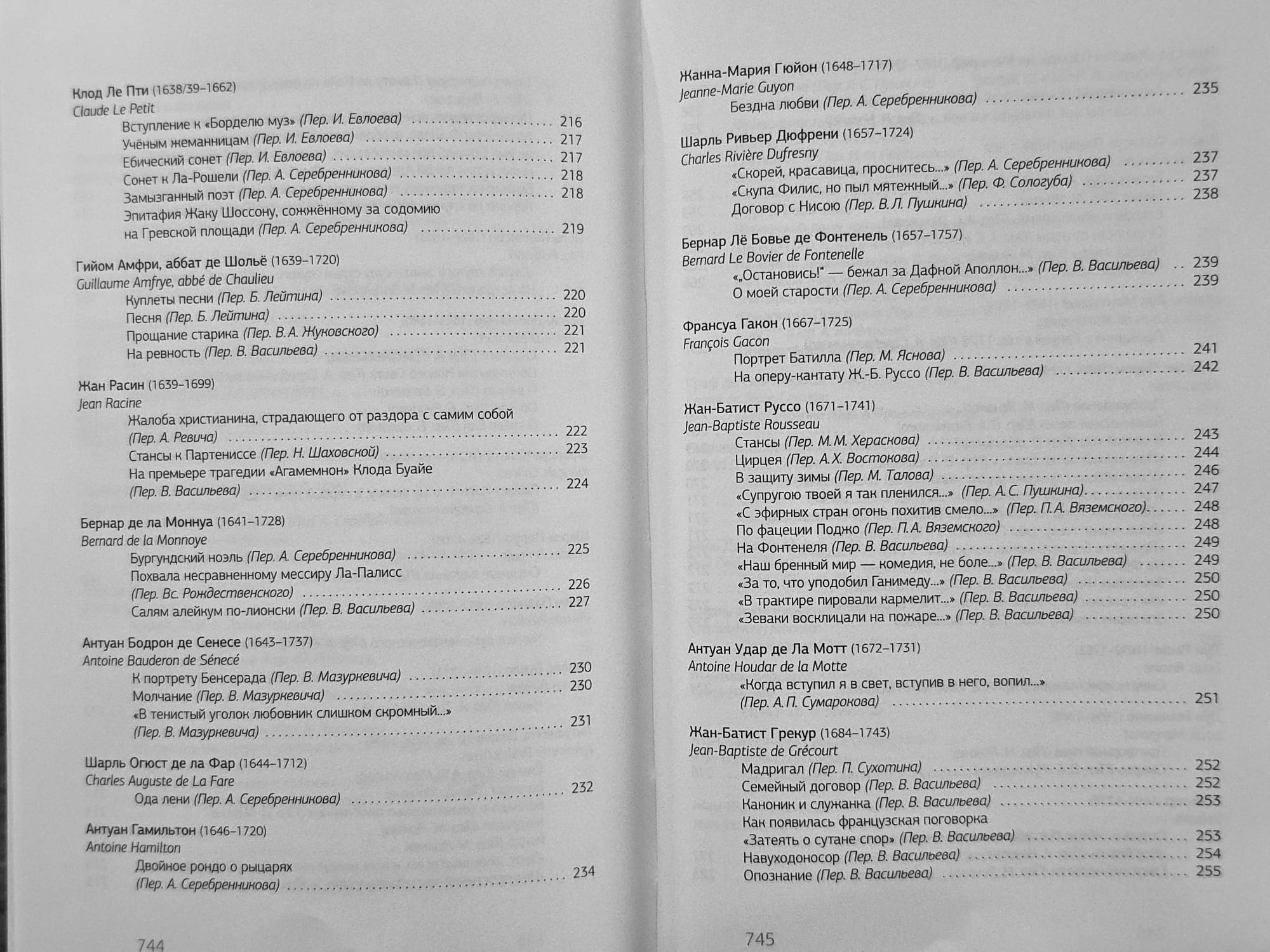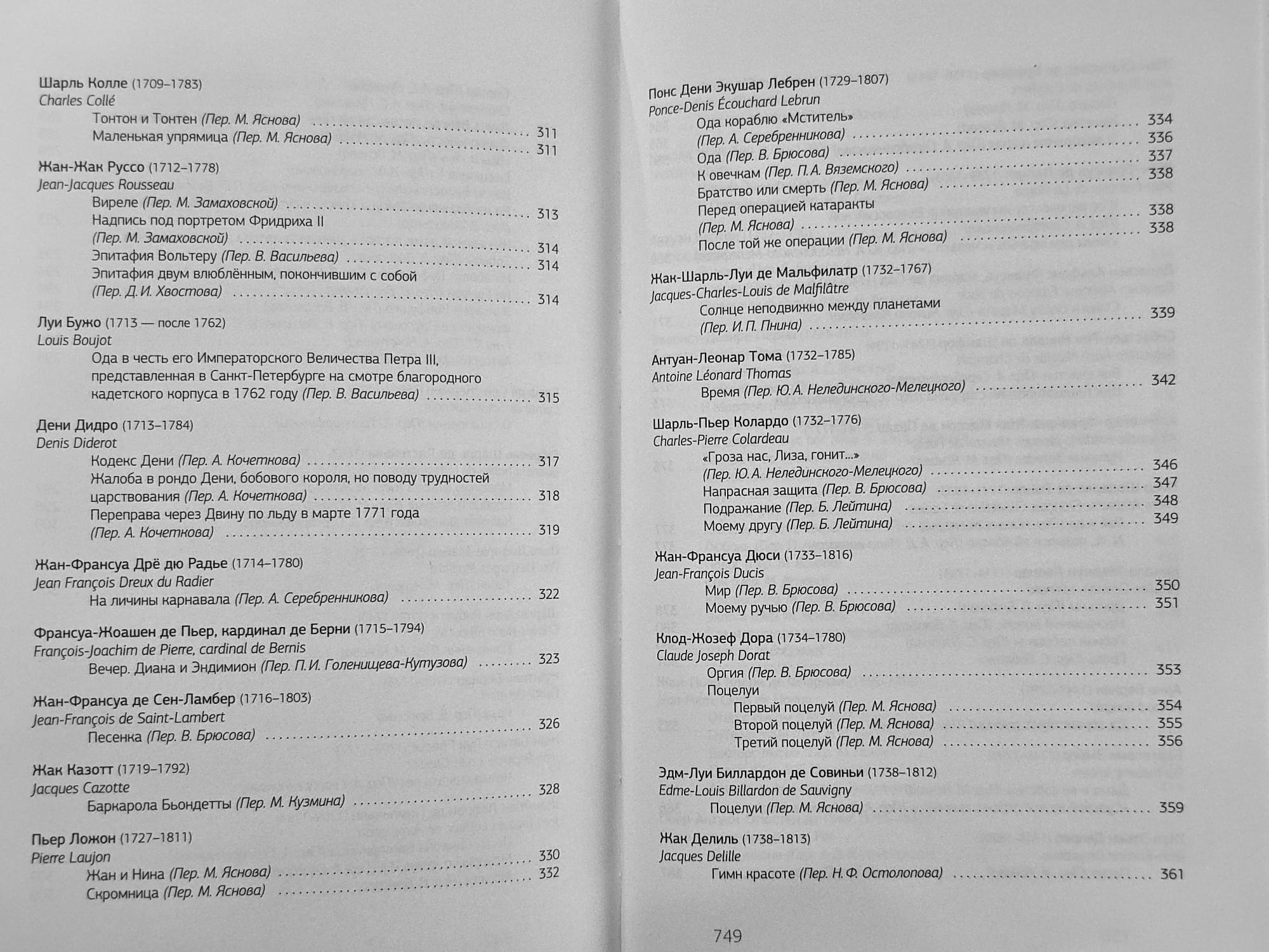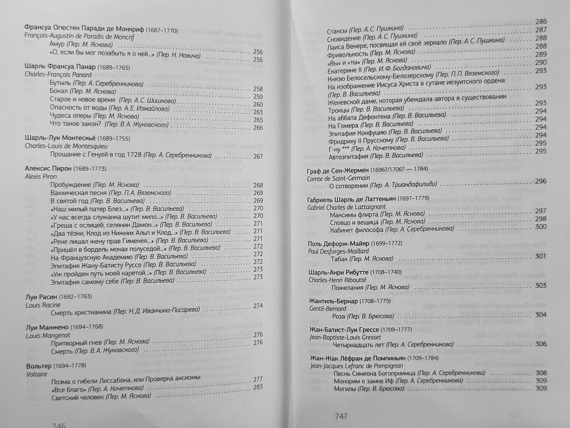 С середины восемнадцатого века до середины двадцатого французская поэзия удостаивалась у русских поэтов наибольшего внимания. Со времён Сумарокова, опубликовавшего в 1755 году свои переложения французской поэзии, её перелагали чуть ли не всё известные русские поэты: Жуковский, Пушкин, Тютчев, Баратынский, Бенедиктов, Блок, Брюсов, Пастернак, Мандельштам...