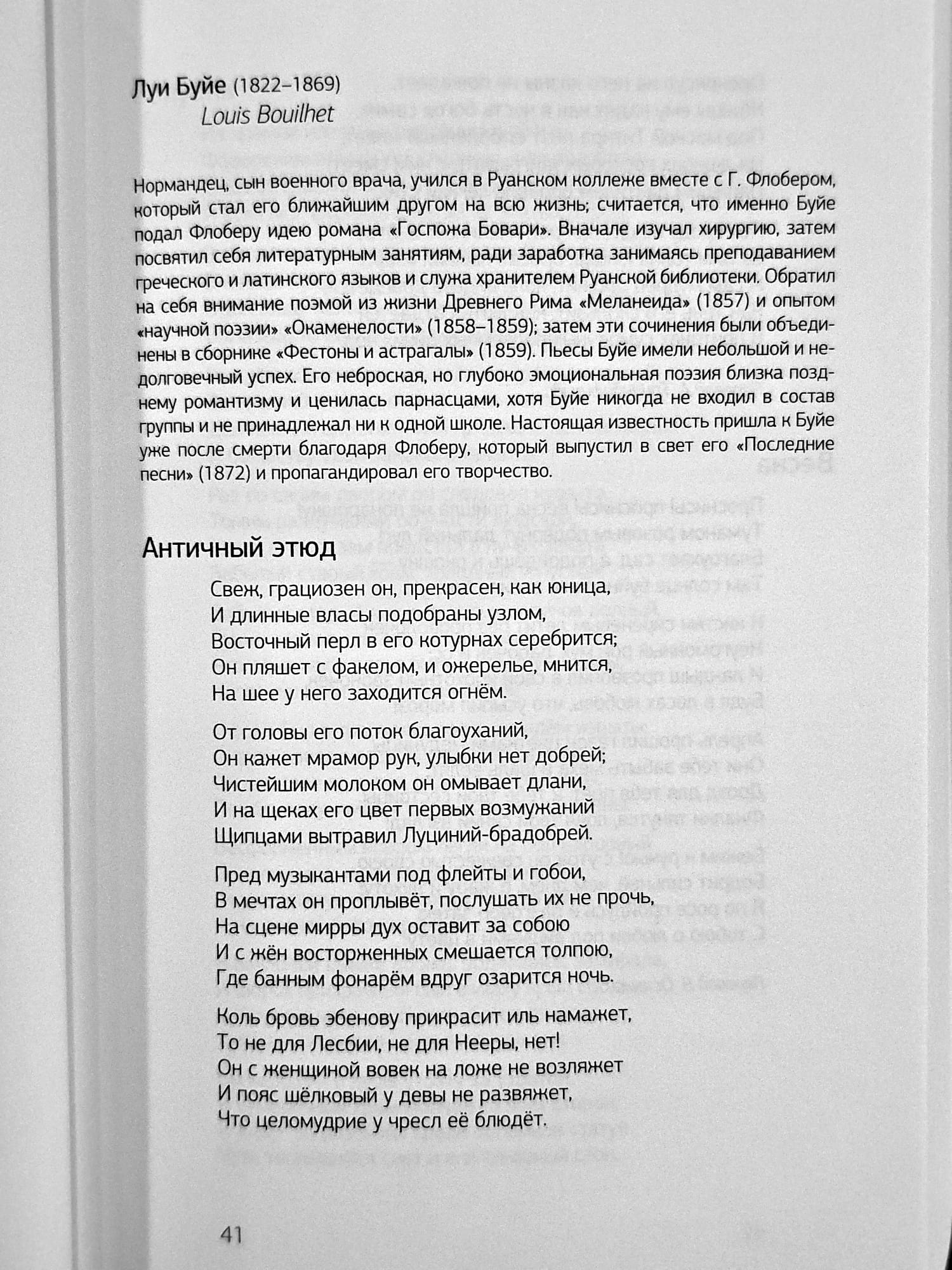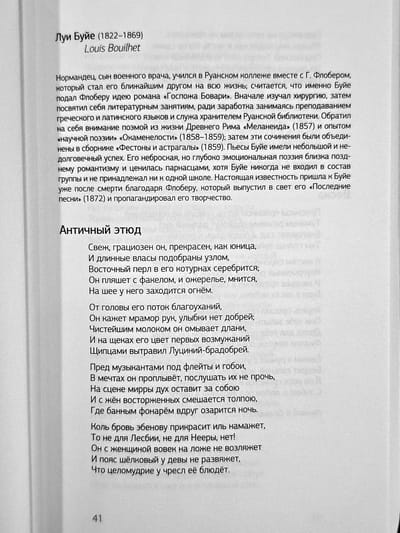 Поэзия Франции приблизительно со времён Людовика XIII (когда происходили события «Трёх мушкётеров») и почти до конца XVIII века известна русскому читателю куда меньше, чем предшествовавшая ей — и та, которая пришла ей на смену. Лишь имена поэта-либертина Теофиля де Вио, скандалиста Поля Скаррона, баснописца Лафонтена, а также тех, чья литературная известность пришла не из мира поэзии,— Мольера, Вольтера, Руссо...— у нас на слуху. Но во времена Французской революции вспыхнула ярчайшая звезда Андре, а в последующие десятилетия появились Виктор Гюго, Ламартин, Мюссе, Готье, Леконт де Лиль... — честь и гордость французской литературы, положившие начало золотому веку французской поэзии.
