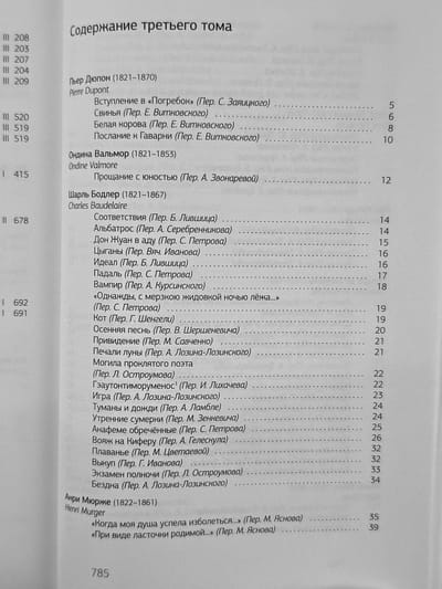 Поэзия XIX — первой половины XX веков вывела французскую музу едва ли не на первое место в мире. На страницах третьего тома антологии мы видим великие имена Бодлера, Эредиа, Малларме, Верлена, Рембо, Корбьера, Самена, Лафорга, Валери, Аполлинера — и десятки других имён, возможно, не столь известных, но от этого не менее значительных. К сожалению, ограничения, налагаемые авторским правом, не позволили представить в антологии поэзию последних семи десятилетий. Однако хочется верить, что у нашего издания рано или поздно найдутся достойные продолжатели.