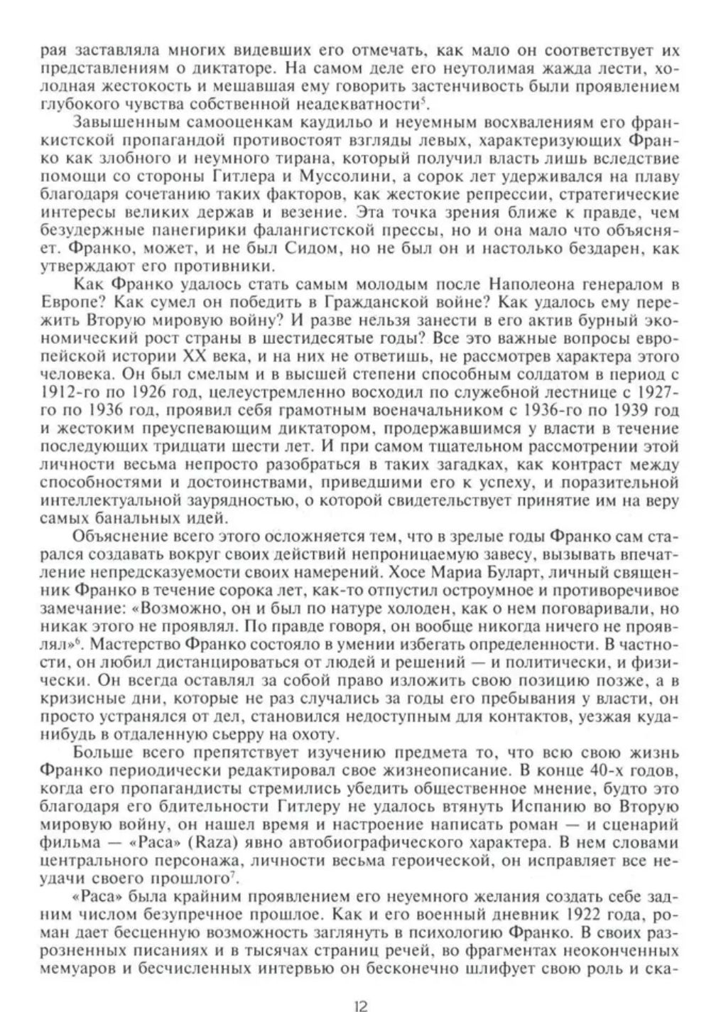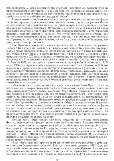 Увенчавшая многолетний труд ученого книга по-своему уникальна: автор не замыкается на жизнеописании конкретного человека, а дает цельную картину развития Испании, Европы и мира на протяжении многих десятилетий, приводит на страницах своего исследования богатейшую палитру мнений современников одной из самых загадочных личностей XX века. Пройдя вместе с автором весь жизненный путь героя, читатель, думается, сам сможет ответить на вопрос, какими чертами должен обладать и чего не должен иметь в характере человек, который в цивилизованной стране может, поднявшись на самый верх иерархии власти, подавить все общество, единолично вершить судьбу целого народа, казнить и миловать по своей прихоти, другими словами, стать тоталитарным правителем.