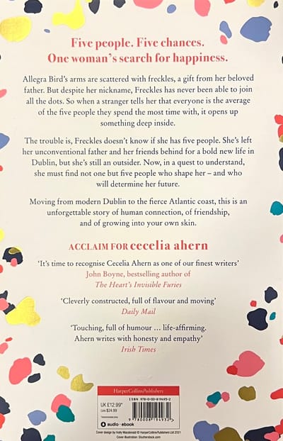 When a stranger utters these words to Allegra Bird, nicknamed Freckles, it turns her highly ordered life upside down. In her current life as a parking warden, she has left her eccentric father and unconventional childhood behind for a bold new life in the city. But a single encounter leads her to ask the question she’s been avoiding for so long: who are the people who made her the way she is? And who are the five people who can shape and determine her future? Just as she once joined the freckles on her skin to mirror the constellations in the night sky, she must once again look for connections. Told in Allegra’s vivid, original voice, moving from Dublin to the fierce Atlantic coast, this is an unforgettable story of human connection, of friendship, and growing into your own skin. Five people. Five stars. Freckle to freckle. Star to star.