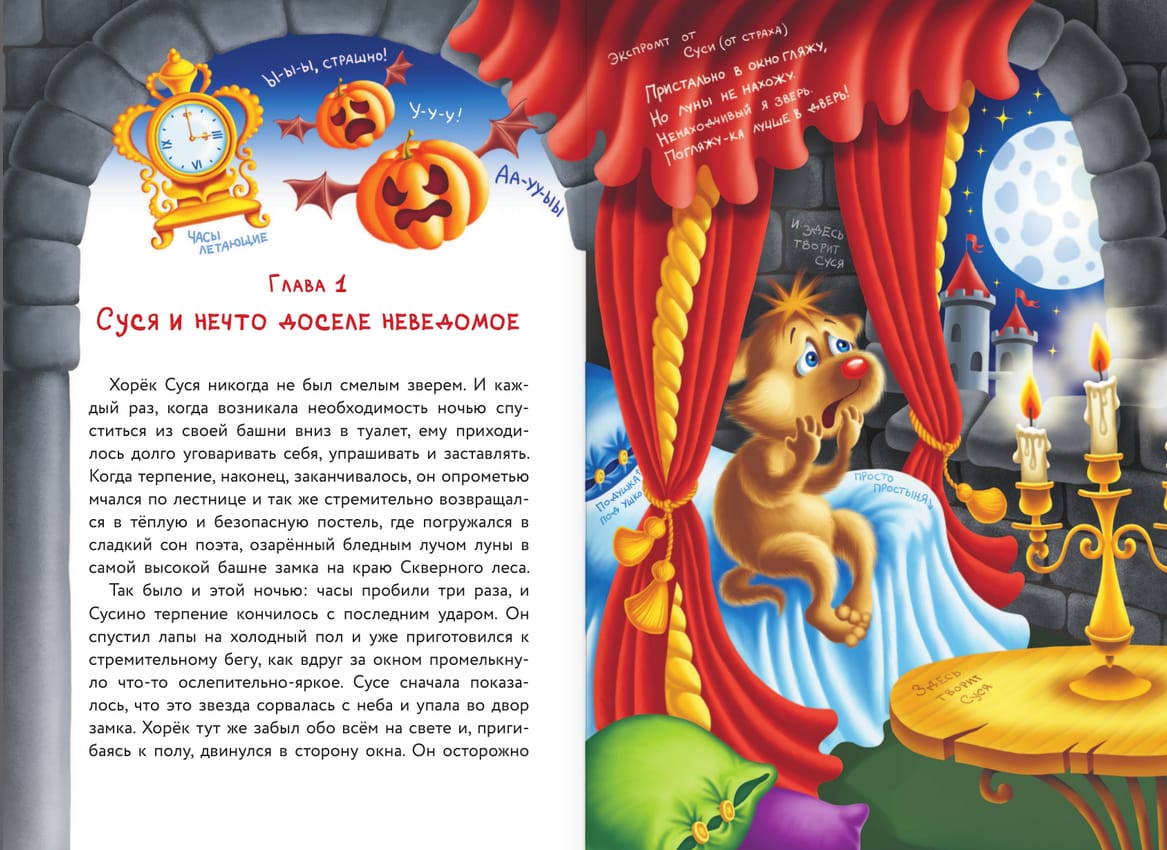 «Ночные истории, или У-у-у, страшно!» — самая таинственная книга популярного цикла Кати Матюшкиной и Кати Оковитой о детективах псе Фу-Фу и коте Кис-Кисе. Читателей ждут совсем не страшные, но очень весёлые истории, свирепые традиции, таинственные исчезновения, захватывающие расследования, невероятные приключения, отважные и отзывчивые герои и, конечно, множество смешных ситуаций. Красочные забавные иллюстрации и интерактивные задания от авторов: Кати Матюшкиной и Кати Оковитой. Прекрасная возможность познакомить детей с праздником Хеллоуин. Идеальная история для семейного чтения.