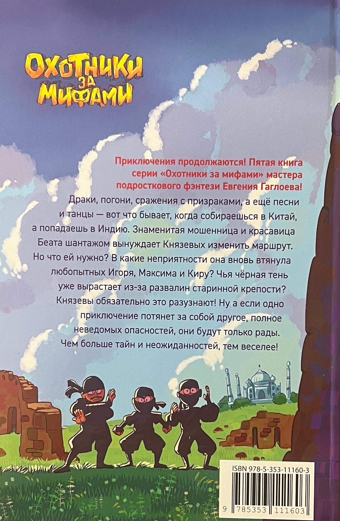 Драки, погони, сражения с призраками, а еще песни и танцы — вот что бывает, когда собираешься в Китай, а попадаешь в Индию. Знаменитая мошенница и красавица Беата шантажом вынуждает Князевых изменить маршрут. Но что ей нужно? В какие неприятности она вновь втянула любопытных Игоря, Максима и Киру? Чья черная тень уже вырастает из-за развалин старинной крепости? Князевы обязательно это разузнают! Ну а если одно приключение потянет за собой другое, полное неведомых опасностей, они будут только рады.