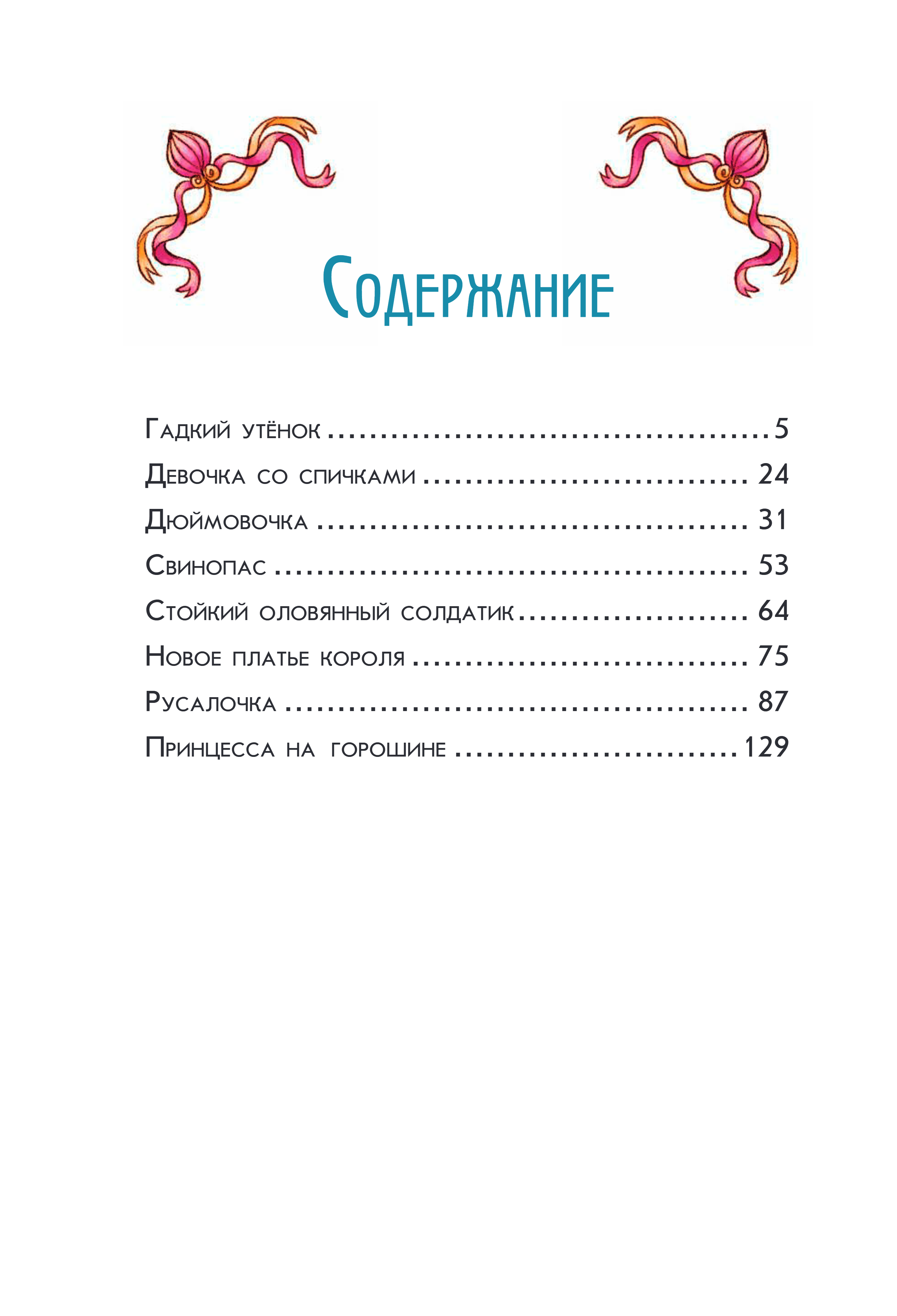 В сборнике «добрых сказок» маленький читатель найдёт сюжеты о сострадании, любви и честности. «Стойкий оловянный солдатик» и «Русалочка» расскажут печальные, но трогательные истории любви, «Девочка со спичками» научит тому, что свет можно найти даже в самые тёмные времена, а «Новое платье короля» заставит посмеяться над нерадивым королём и его нерадивыми поданными.