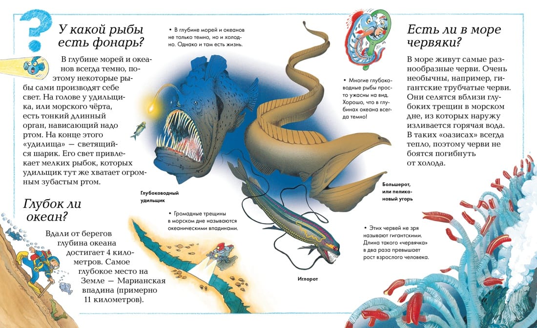 Что такое эволюция? Почему у гор острые вершины? Чем отличаются моря от океанов? Что такое «черные курильщики»? Какая рыба больше всех? Кто такая Люси? Почему кактусы колючие? Почему пищат комары? Что такое сноуборд?