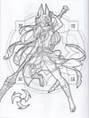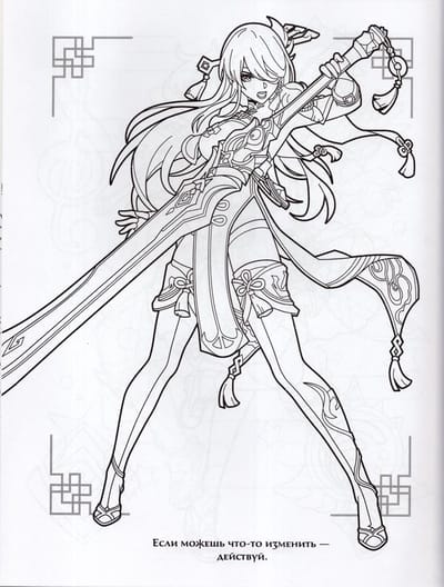 Genshin Impact. Герои вселенной Геншин. Раскраска (бирюзовая)