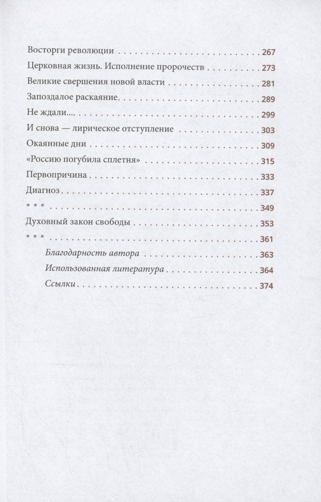 Гибель могущественной Российской империи, построенной за многие века поколениями наших предков и сгинувшей за считаные дни — трагический и в то же время бесценный урок для наших соотечественников на все времена. В новой книге митрополит Тихон (Шевкунов) исследует события Февральской революции 1917 года и то, как в целом создают катаклизмы в России. Опираясь на научные источники, он приводит неизвестные ошеломляющие факты, предлагает материал для плодотворных размышлений и показывает, до чего мы сами способны довести нашу страну, что из самых лучших побуждений можем натворить в России и для самих себя, и для будущих поколений.