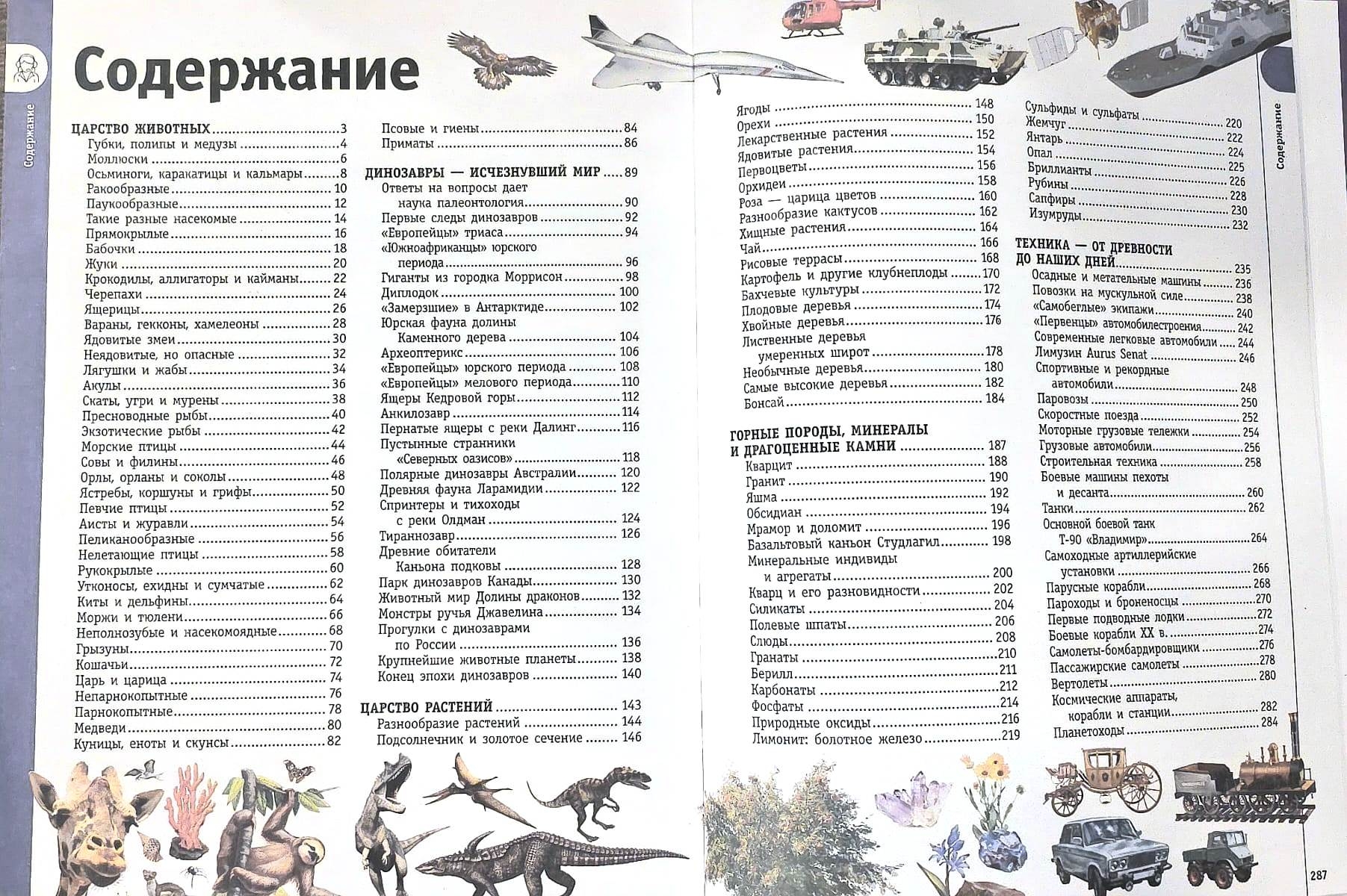 Информация, представленная в этой обширной энциклопедии, необычайно разнообразна. В ней описываются горные породы, минералы и драгоценные камни, которые образовались еще во времена формирования Земли, богатый растительный мир нашей зеленой планеты, самые разные животные, обитающие в воде и на суше. Кроме того, книга позволяет совершить увлекательное путешествие в далекое прошлое — в исчезнувший мир динозавров. Не остались без внимания машины и механизмы, способные передвигаться по воде и под водой, по земле и по воздуху, которые человек изобрел себе в помощь, — простые и сложные технические устройства с колесами и гусеницами, с винтами и крыльями, с парусами и перископами.