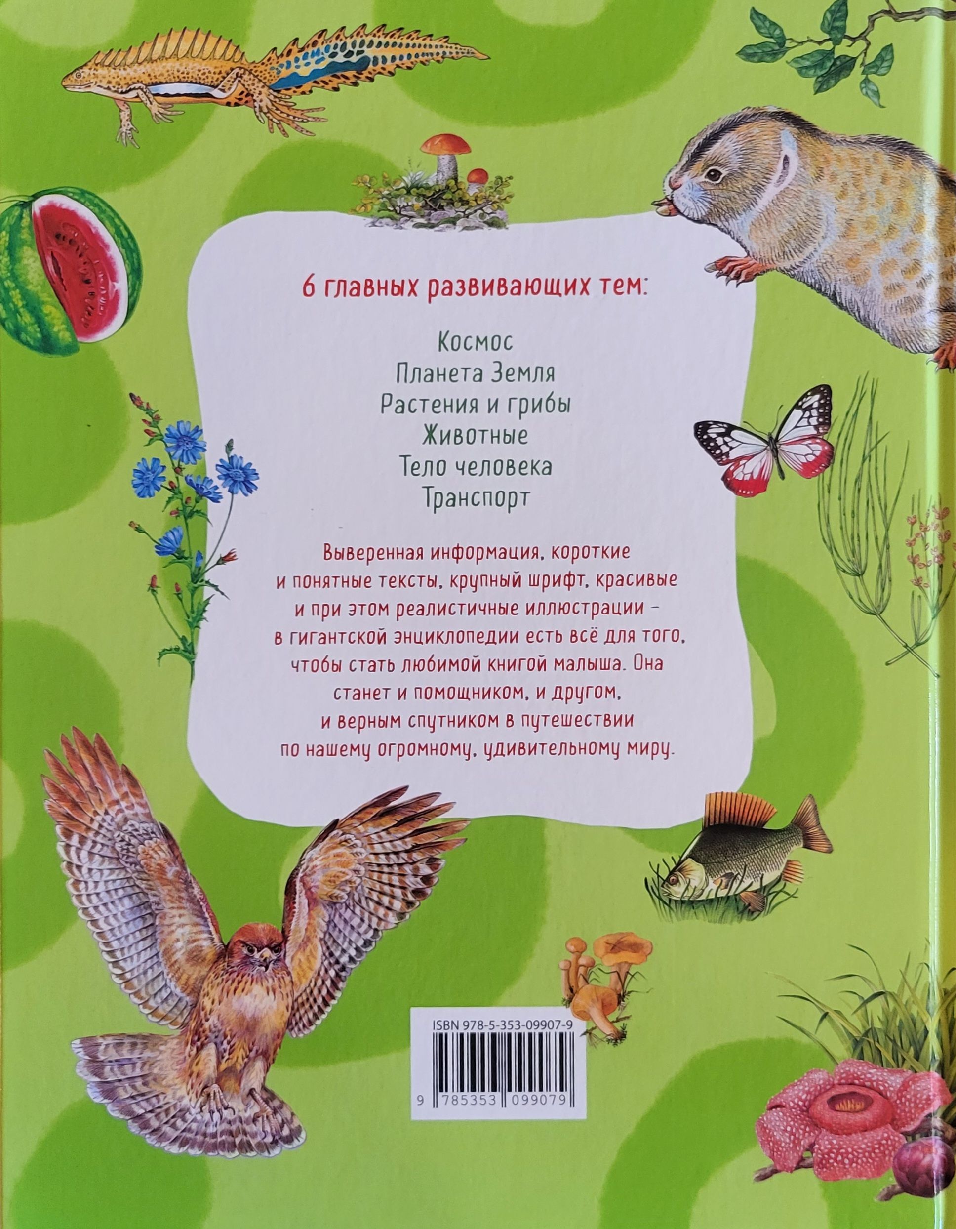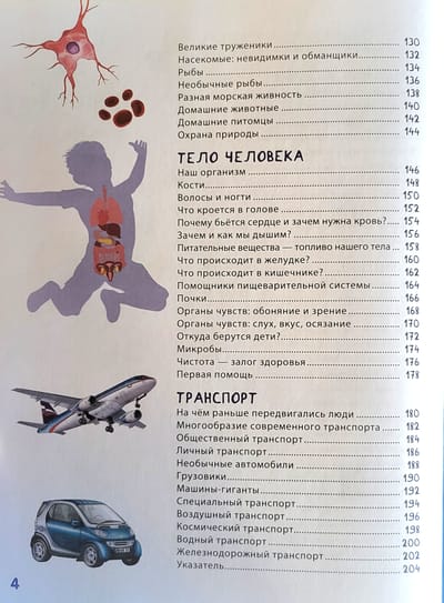 Эта энциклопедия расскажет малышу обо всём на свете! Он узнает, как устроена планета, на которой мы живём; какие бывают явления природы; что «едят» растения и из чего состоит звериное меню; чем отличаются друг от друга времена года; где разные животные устраивают себе дом; когда жили и почему вымерли динозавры, для чего им были нужны гребни, длинные когти, заострённые рога и толстые воротники; как устроено тело человека, откуда берутся  дети; на чём люди передвигались раньше и на чём теперь.