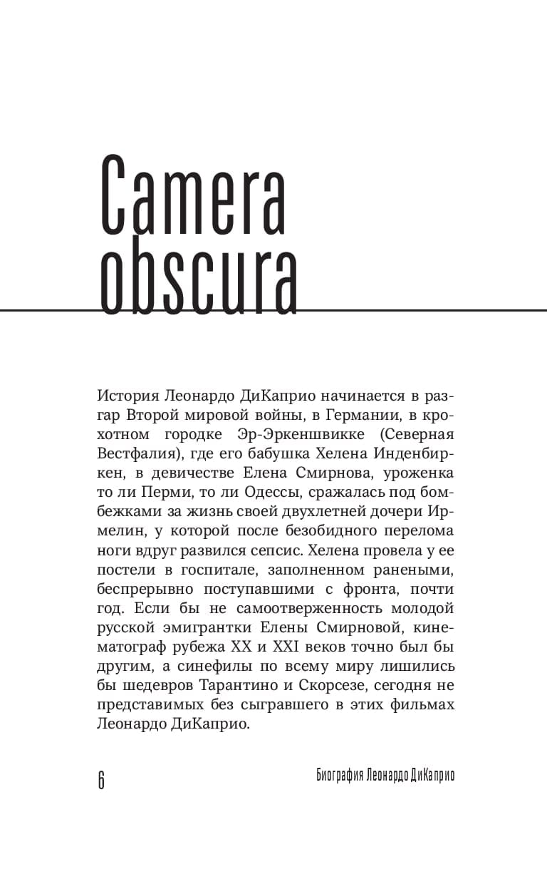 На страницах этой книги Зинаида Пронченко часто сравнивает своего героя с особами королевских кровей, пытаясь доказать утверждение, давно не нуждающееся ни в какой аргументации: нет большей звезды в современном кино, чем Леонардо ДиКаприо. Будут ли у него наследники — вот в чем вопрос? Потому что в отсутствие настоящих звезд человечество, так или иначе состоящее из зрителей, почувствует себя очень одиноко.