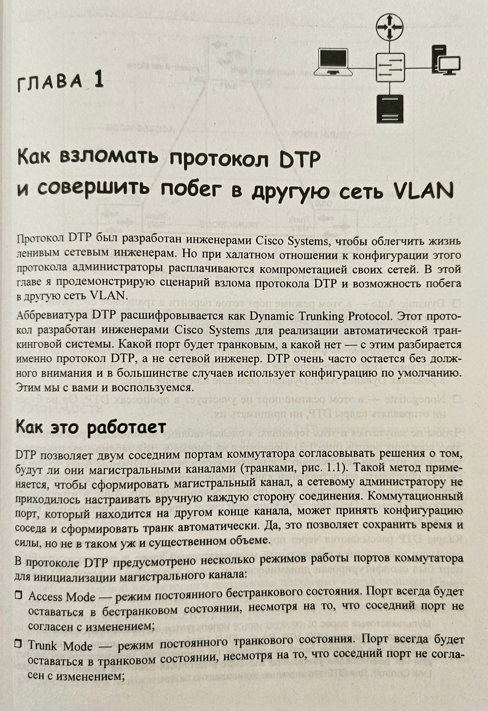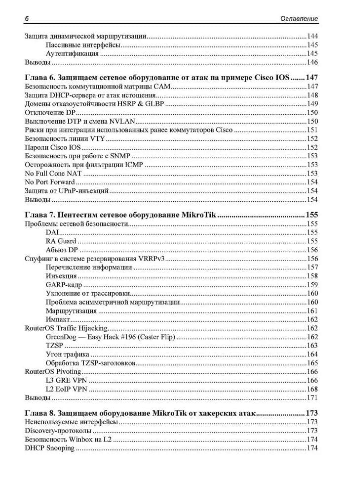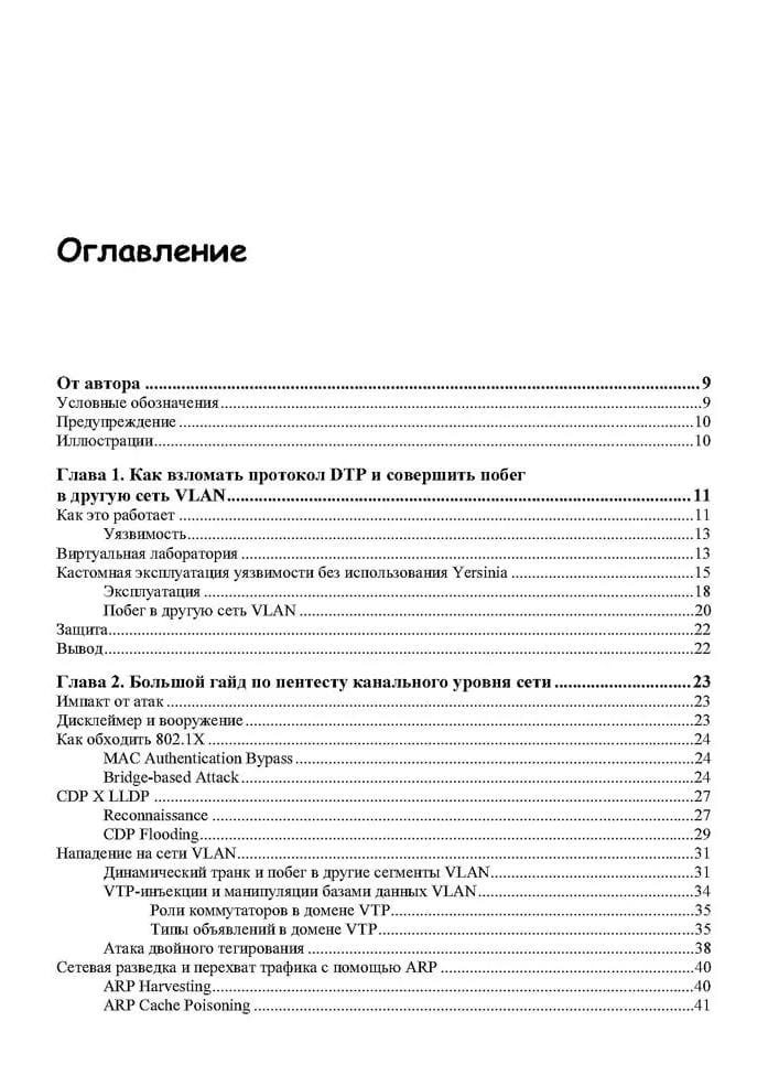 В книге рассматриваются вопросы безопасности компьютерных сетей. Даны практические рекомендации по проведению пентеста сетей Cisco, приведены полезные сведения о протоколе DTP от компании Cisco Systems, представлено подробное руководство по пентесту канального уровня сети, тестированию безопасностии и защите устройств MikroTik.