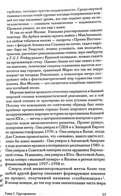 Автор предлагает новый взгляд на проблему глобализации, идущий вразрез с представлениями глобалистов и антиглобалистов. Согласно автору, экономическая глобализация последних 15-20 лет не является ни уникальной, ни необратимой. Мир уже пережил первую волну глобализации в конце XIX-начале XX вв., она закончилась крахом. Нынешняя волна вызвана не развитием технологий и политикой «рыночного фундаментализма», а всеобщим разочарованием в практике всеобъемлющего государственного регулирования. Поступательное развитие мировой экономики и повышение благосостояния широких масс требуют более фундаментальных политических и идеологических изменений, чем «глобализация».