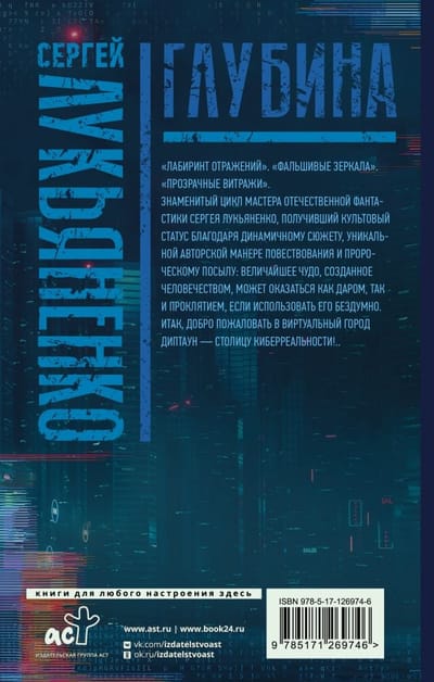 Лабиринт отражений Фальшивые зеркала Прозрачные витражи «Лабиринт отражений». «Фальшивые зеркала». «Прозрачные витражи». Знаменитый цикл мастера отечественной фантастики Сергея Лукьяненко, получивший культовый статус благодаря динамичному сюжету, уникальной авторской манере повествования и пророческому посылу: величайшее чудо, созданное человечеством, может оказаться как даром, так и проклятием, если использовать его бездумно. Итак, добро пожаловать в виртуальный город Диптаун — столицу киберреальности!..