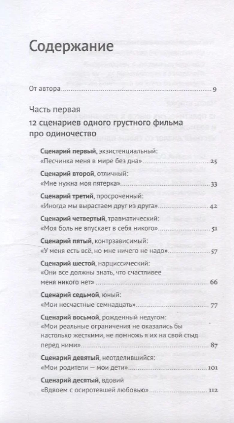 В первой части книги читатель найдет истории, иллюстрирующие разные виды одиночества. Тонко и точно автор описывает обстоятельства и реакции человека, оказавшегося в каждой из сложных ситуаций, особо подчеркивая ту границу, где естественное состояние становится неврозом, мешающим жить свободно и радостно.