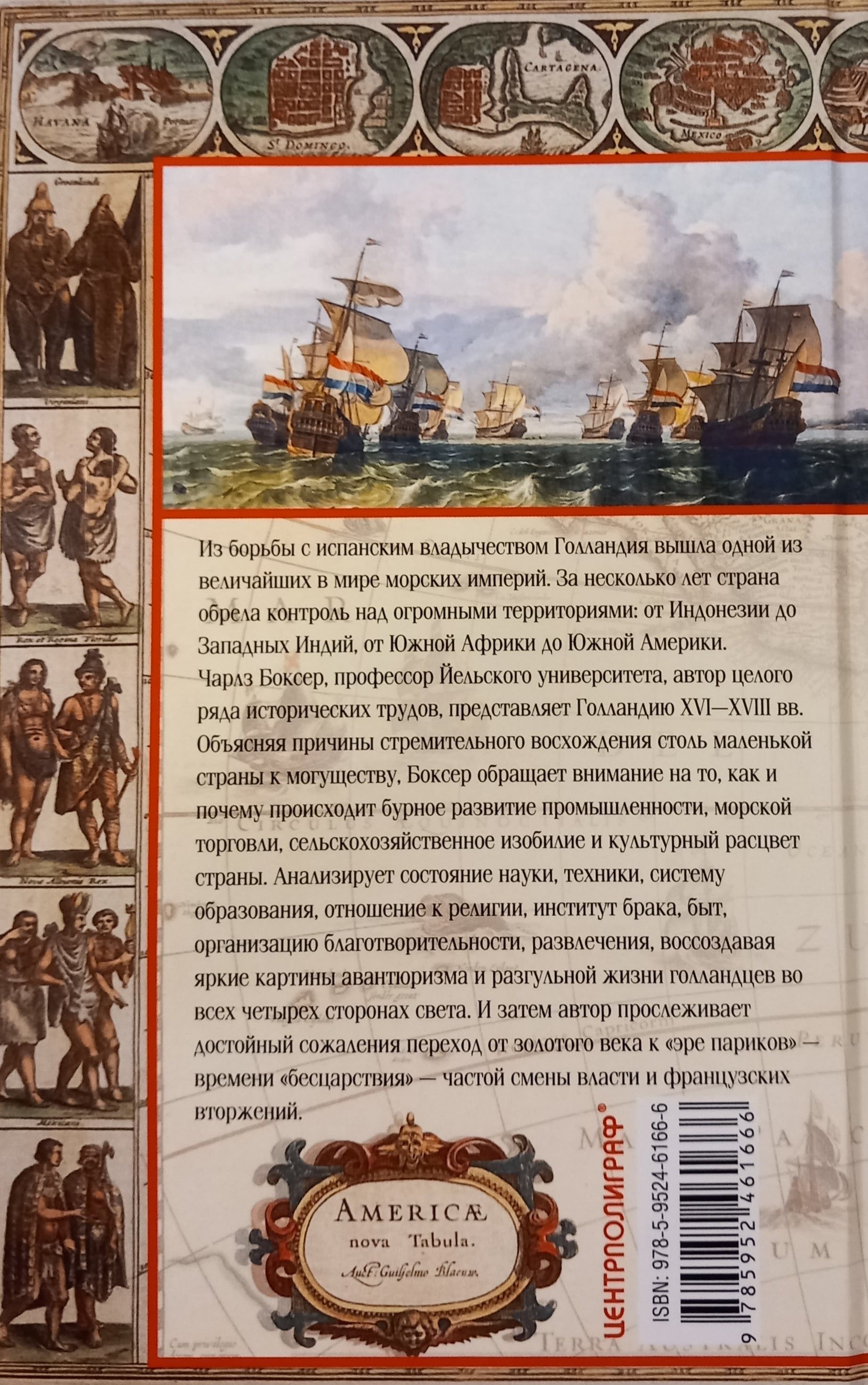 Чарлз Боксер, профессор Йельского университета, автор целого ряда исторических трудов, представляет Голландию XVI—XVIII вв. Объясняя причины стремительного восхождения столь маленькой страны к могуществу, Боксер обращает внимание на то, как и почему происходит бурное развитие промышленности, морской торговли, сельскохозяйственное изобилие и культурный расцвет страны. Анализирует состояние науки, техники, систему образования, отношение к религии, институт брака, быт, организацию благотворительности, развлечения, воссоздавая яркие картины авантюризма и разгульной жизни голландцев во всех четырех сторонах света. И затем автор прослеживает достойный сожаления переход от золотого века к эре париков — времени «бесцарствия» — частой смены власти и французских вторжений.