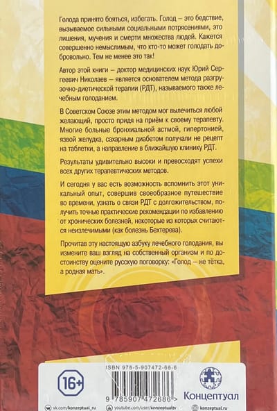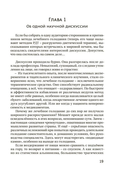Во все времена люди очень боялись голода и делали все, чтобы его избежать. Голод в нашем представлении связан с мучениями и смертью, поэтому многим сложно себе представить, как можно голодать добровольно. Однако это возможно! Автор книги «Голодание ради здоровья» — Юрий Сергеевич Николаев, доктор медицинских наук. Он разработал метод разгрузочно-диетической терапии, который также называется лечебным голоданием. В СССР любой человек мог прийти к терапевту и начать такое лечение. Больные диабетом, гипертонией, бронхиальной астмой, язвой желудка и другими заболеваниями получали прежде всего направление в клинику разгрузочно-диетической терапии. Результаты данного метода были гораздо более впечатляющими, чем эффект от терапевтического лечения. Сегодня у вас есть уникальная возможность вернуться к проверенному десятилетиями опыту голодания ради здоровья. Своеобразное путешествие во времени позволит вам узнать о влиянии голодания на лечение множества болезней и общую продолжительность жизни, а также получить полезные рекомендации. Прочитав книгу «Голодание ради здоровья», вы наверняка сможете изменить свой взгляд на собственный организм и лучше понять известное изречение: «Голод не тётка, а мать родная».