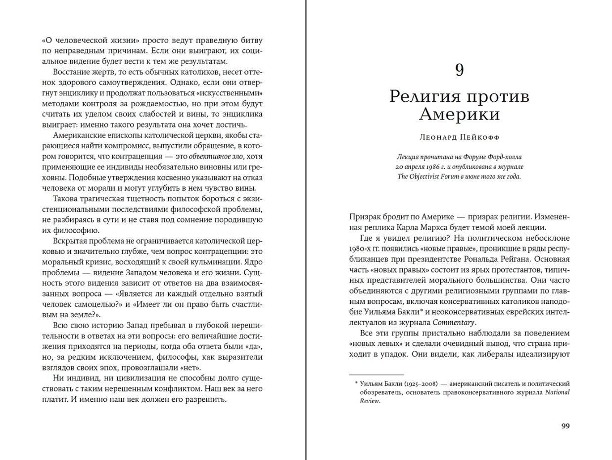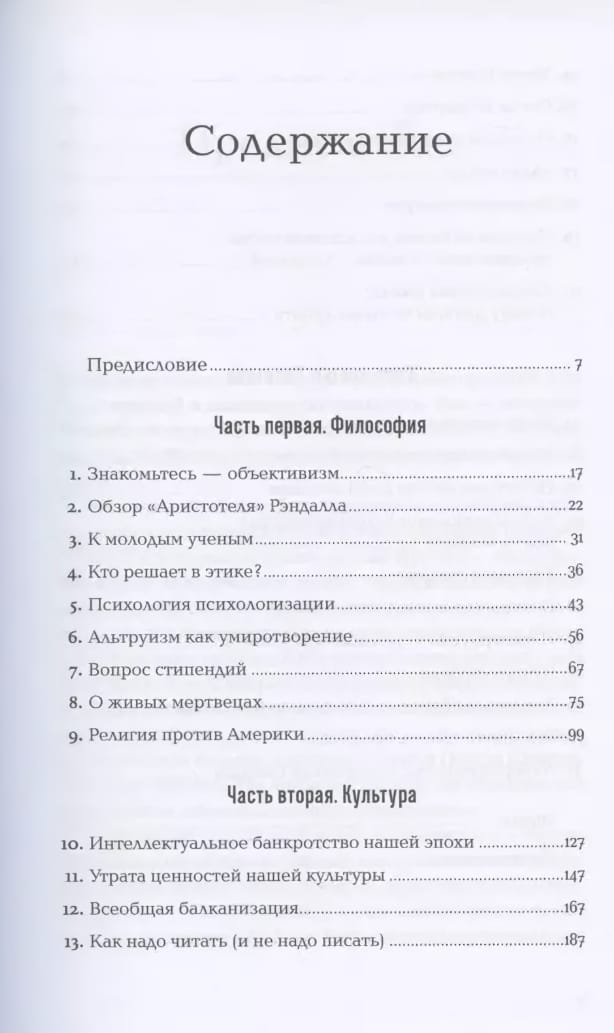 Смерть Мэрилин Монро, освоение космоса, война во Вьетнаме, противостояние США и Советского Союза, позиция женщины в политике, жесткая критика Католической церкви в ее попытках регулировать интимную сторону жизни общества. Эти и другие знаковые события и процессы второй половины XX века Айн Рэнд осмысляет через приз­му объективистского мировоззрения, оставаясь яростной защитницей индивидуальных свобод и частного капитала. В книге собраны лекции и статьи 1961–1981 годов — «золотой фонд» интеллектуального наследия писательницы. Их дополняют пять эссе философа Леонарда Пейкоффа, который оставался близким другом и соратником Рэнд до последних дней ее жизни.