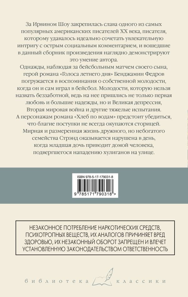 За Ирвином Шоу закрепилась слава одного из самых популярных американских писателей XX века, писателя, которому удавалось идеально сочетать увлекательную интригу с острым социальным комментарием, и вошедшие в данный сборник произведения наглядно демонстрируют это умение автора.