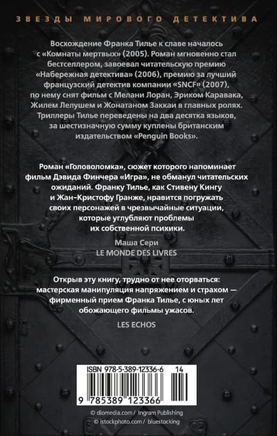В триллере Франка Тилье «Головоломка» герои Илан и Хлоэ, профессиональные охотники за сокровищами, внедряются в таинственную игру, где главный приз составляет триста тысяч евро, а цена ее — человеческая жизнь. Правила игры им неизвестны, они знают лишь ее название: «Паранойя». В горах на территории заброшенной психиатрической лечебницы восемь участников должны бросить вызов своим самым потаенным страхам. Чтобы обрести ключ от заветного сейфа с деньгами, нужно собрать десять черных хрустальных лебедей. Но осторожно: цена такой находки — жизнь. Ваша жизнь.