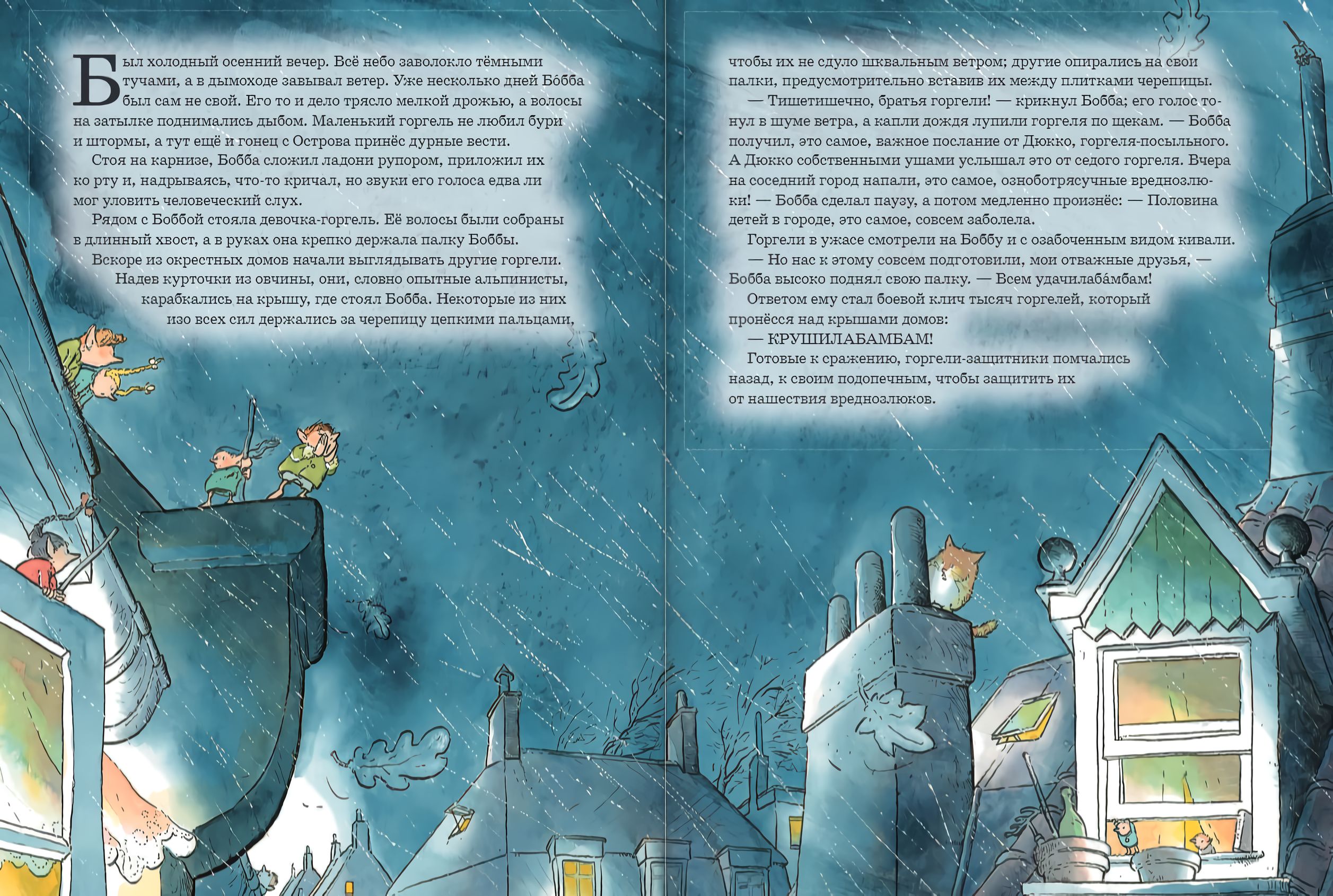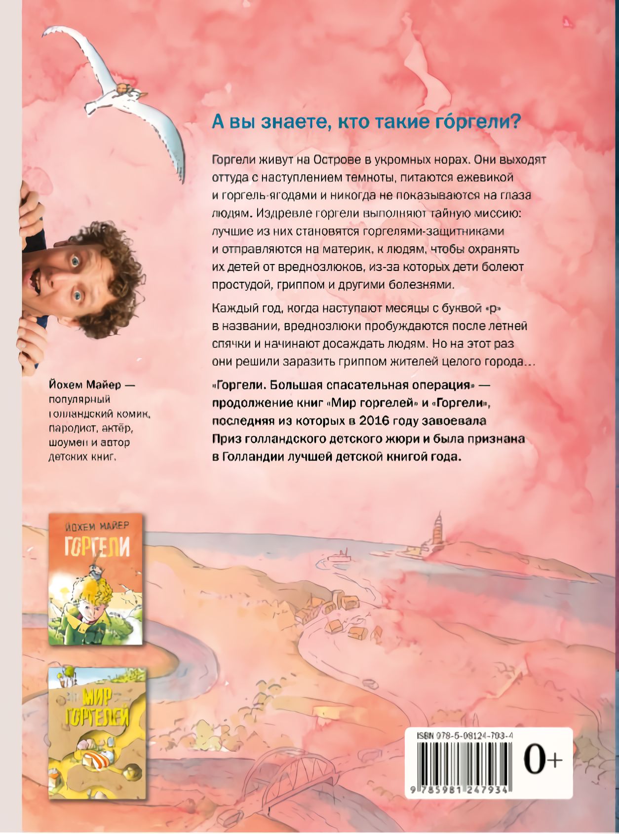 «Горгели. Большая спасательная операция» — продолжение книг «Мир горгелей» и «Горгели», последняя из которых в 2016 году завоевала Приз голландского детского жюри и была признана в Голландии лучшей детской книгой года.