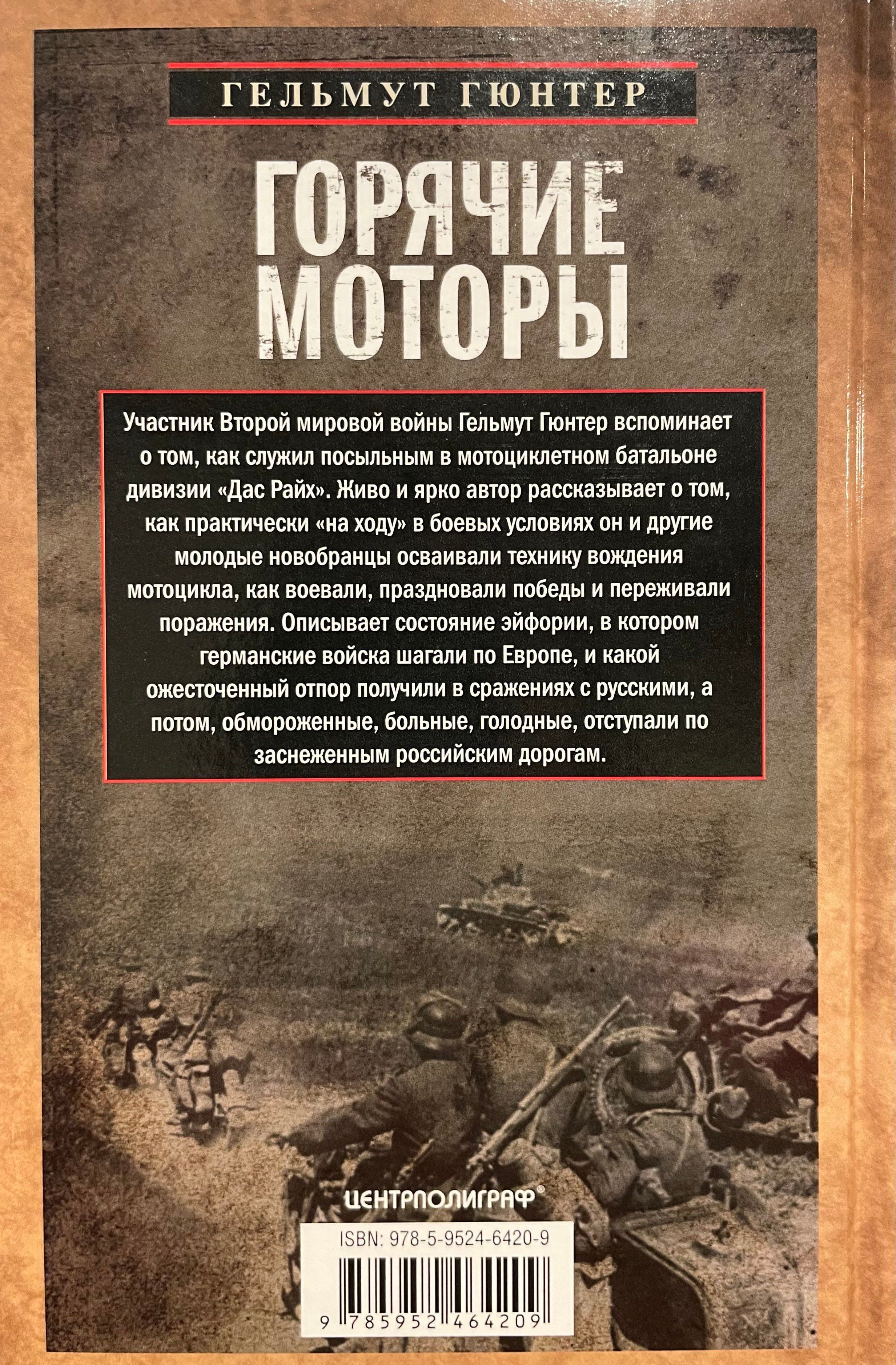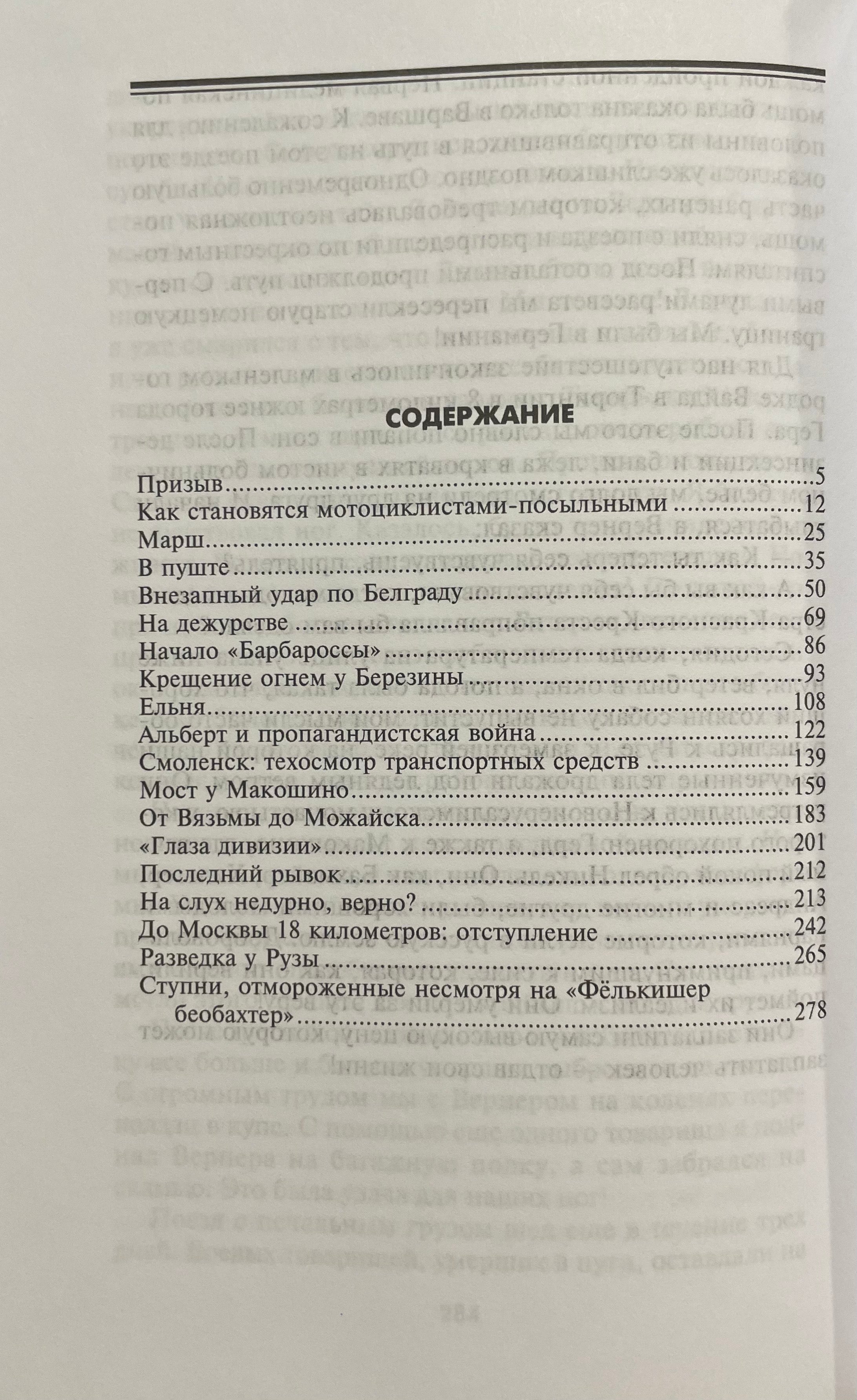 Участник Второй мировой войны Гельмут Гюнтер вспоминает о том, как служил посыльным в мотоциклетном батальоне дивизии «Дас Райх». Живо и ярко автор рассказывает о том, как практически «на ходу» в боевых условиях он и другие молодые новобранцы осваивали технику вождения мотоцикла, как воевали, праздновали победы и переживали поражения. Описывает состояние эйфории, в котором германские войска шагали по Европе, и какой ожесточенный отпор получили в сражениях с русскими, а потом, обмороженные, голодные, отступали по заснеженным российским дорогам.