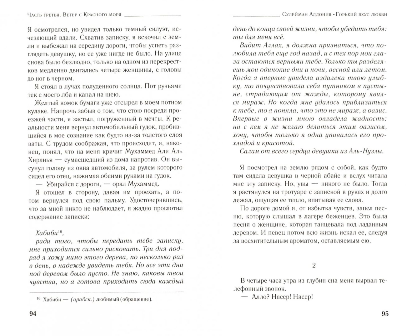 Роман переносит нас в Саудовскую Аравию, на раскаленные солнцем улицы Джидды. Религиозная полиция, насаждая жесткие законы шариата, пристально следит за моральным обликом правоверных мусульман: мужчинам и женщинам, не состоящем в браке, запрещено не только общаться, но даже перекинуться взглядом. Вопреки всему юные Насер и Фьора полюбили друг друга. Влюбленные подвергают себя огромной опасности: ведь им приходится идти на множество рискованных ухищрений, чтобы хоть изредка увидеться на улице или тайно обменяться любовными посланиями.