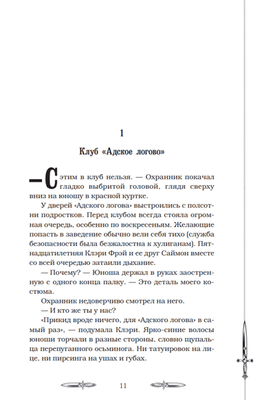 В Сумеречном мире идет борьба добра и зла, решается судьба всего человечества. Неожиданно для себя главная героиня оказывается свидетельницей убийства в нью-йоркском клубе «‎Адское логово»‎. Так происходит первая встреча Клэри с Сумеречными охотниками — воинами, призванными избавить землю от нашествия демонов. В Сумеречном мире Клэри ждут удивительные события, которые полностью изменят ее жизнь