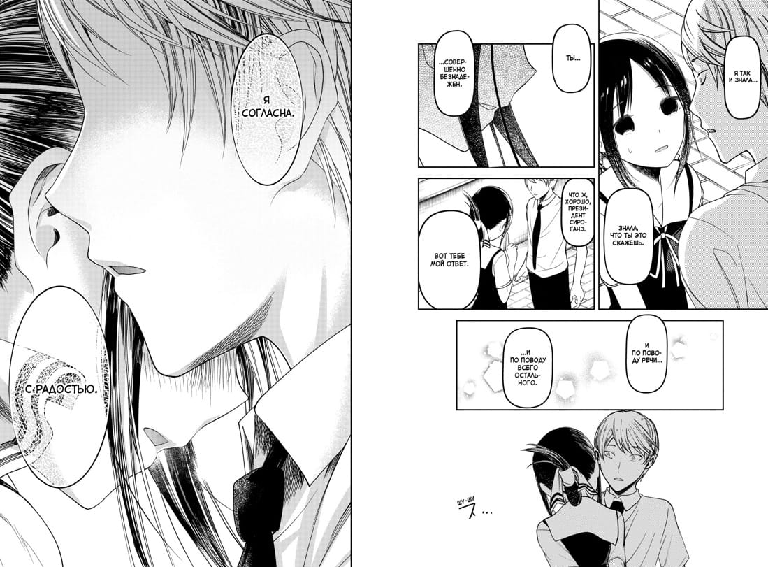 После роспуска шестьдесят седьмого школьного совета Кагуя Синомия и Миюки Сироганэ почти перестали видеться. Однако впереди новые выборы, и Миюки никак не обойтись без человека, который произнесет со сцены речь в его поддержку. Тем временем у экс-президента появляется реальный соперник – Мико Иино, ученица первого класса старшей школы! И этой девочке палец в рот не клади… Сироганэ не сомневается, что выручить его сможет только Кагуя. Но что, если просьба о помощи прозвучит как признание в любви?!