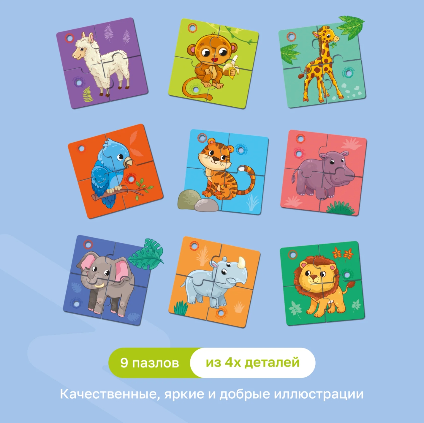 - 9 картинок с пазлами;