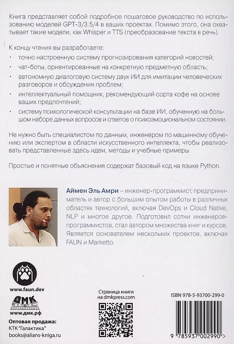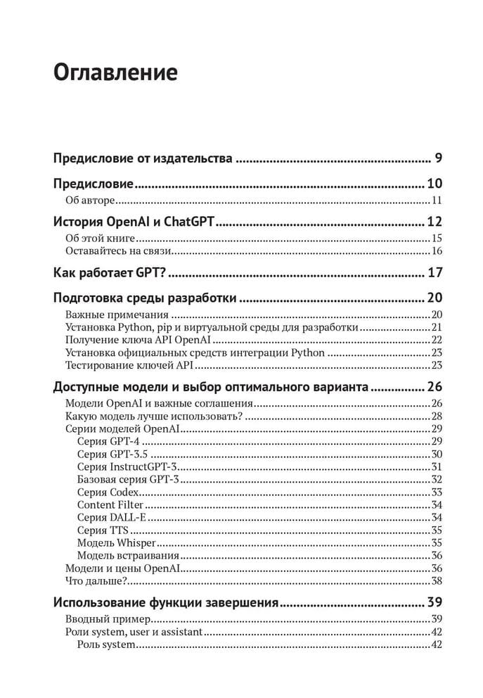 Книга представляет собой подробное пошаговое руководство по использованию моделей GPT-3/3.5/4 в ваших проектах. Оно охватывает также такие модели как Whisper и ТTS (преобразование текста в речь).