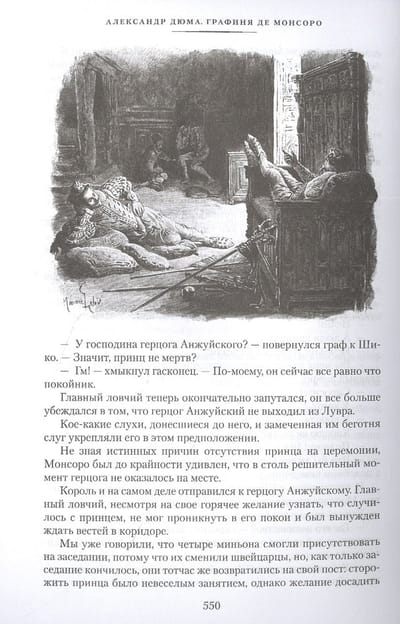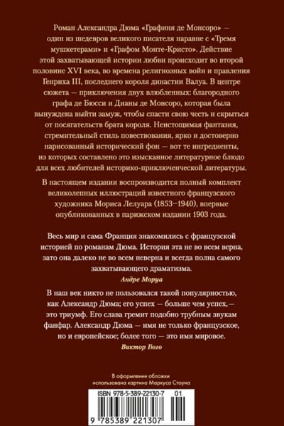 Роман Александра Дюма «Графиня де Монсоро» — один из шедевров великого писателя наравне с «Тремя мушкетерами» и «Графом Монте-Кристо». Действие этой захватывающей истории любви происходит во второй половине XVI века, во времена религиозных войн и правления Генриха III, последнего короля династии Валуа. В центре сюжета — приключения двух влюбленных: благородного графа де Бюсси и Дианы де Монсоро, которая была вынуждена выйти замуж, чтобы спасти свою честь и скрыться от посягательств брата короля. Неистощимая фантазия, стремительный стиль повествования, ярко и достоверно нарисованный исторический фон — вот те ингредиенты, из которых составлено это изысканное литературное блюдо для всех любителей историко-приключенческой литературы. В настоящем издании воспроизводится полный комплект великолепных иллюстраций известного французского художника Мориса Лелуара (1853–1940), впервые опубликованных в парижском издании 1903 года.