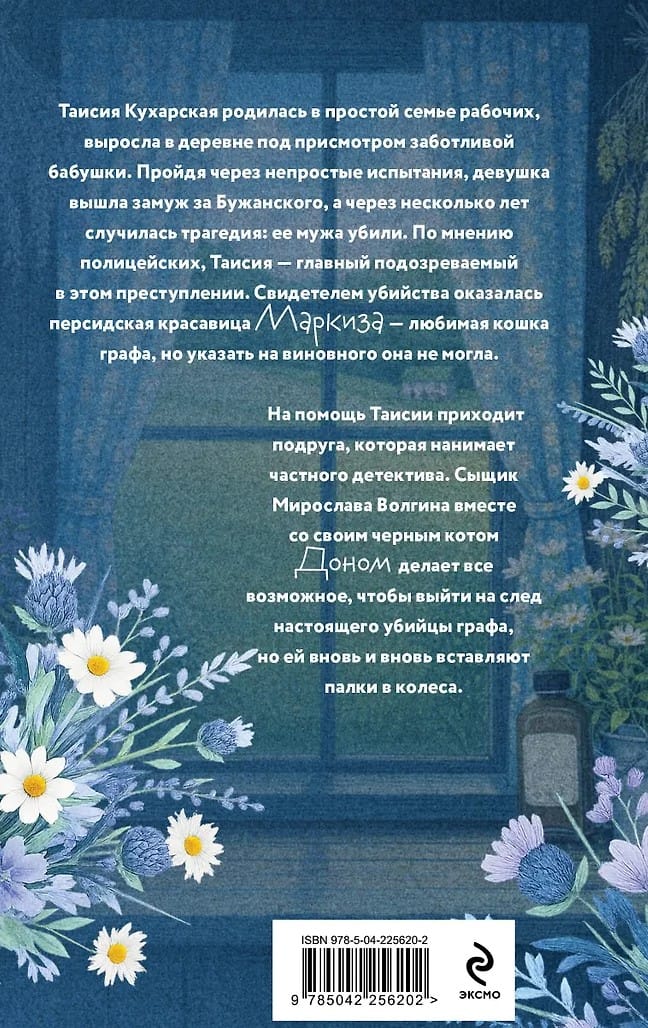 Таисия Кухарская родилась в простой семье рабочих, выросла в деревне под присмотром заботливой бабушки. Пройдя через непростые испытания, девушка вышла замуж за Бужанского, а через несколько лет случилась трагедия: ее мужа убили. По мнению полицейских, Таисия — главный подозреваемый в этом преступлении. Свидетелем убийства оказалась персидская красавица Маркиза — любимая кошка графа, но указать на виновного она не могла. На помощь Таисии приходит подруга, которая нанимает частного детектива. Сыщик Мирослава Волгина вместе со своим черным котом Доном делают все возможное, чтобы выйти на след настоящего убийцы графа, но ей вновь и вновь вставляют палки в колеса.