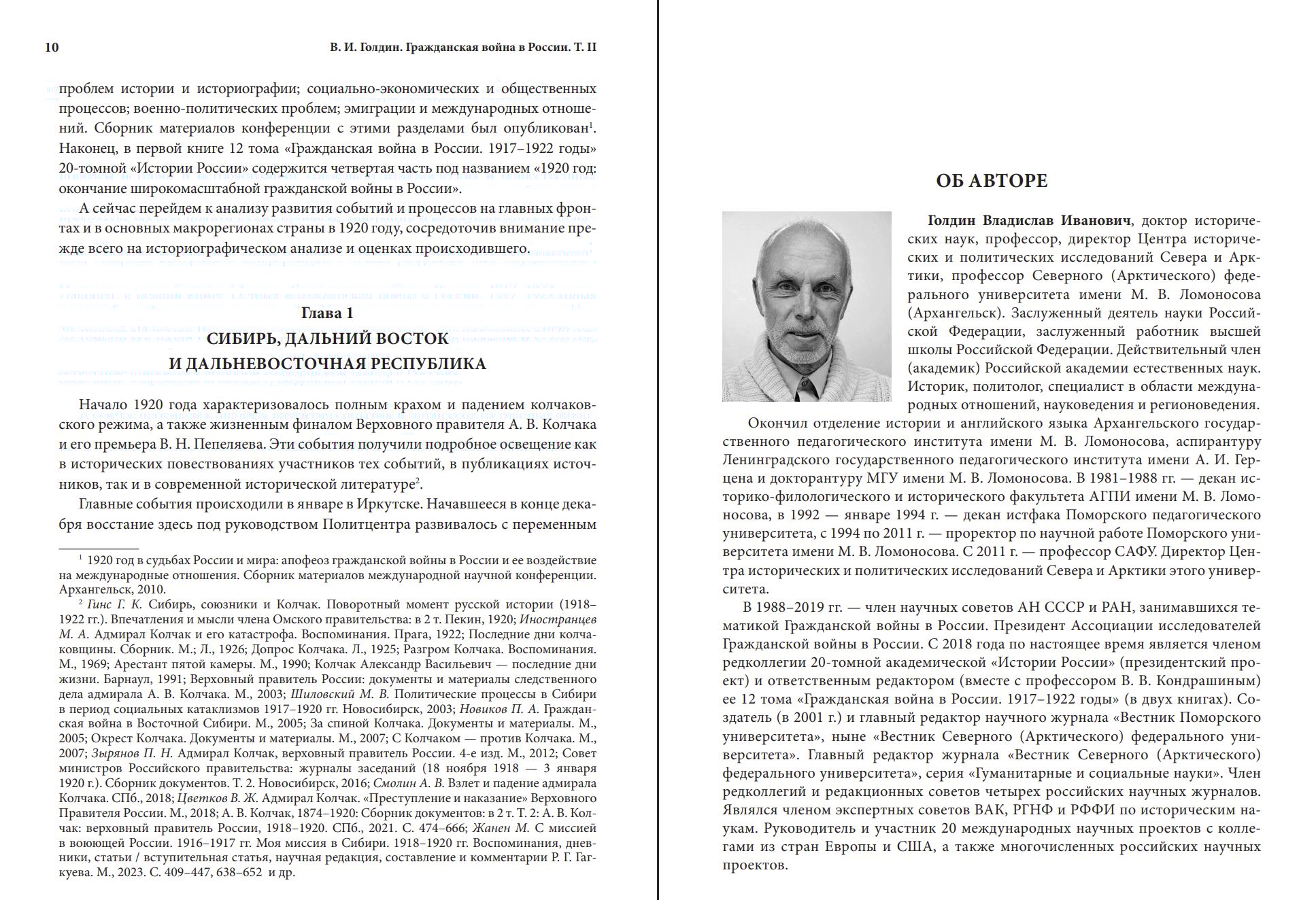 Предметом авторского исследования является также военная, политическая, социально-экономическая и культурная история российской Гражданской войны, включая ее региональное измерение, международную интервенцию и внешнеполитические действия противоборствующих сторон. Проблемы историографического осмысления рассматриваются в контексте комплексного анализа эпохи, что позволяет создать всеобъемлющую картину процессов, происходивших в стране в целом, в ее основных макрорегионах, а также в международном пространстве.