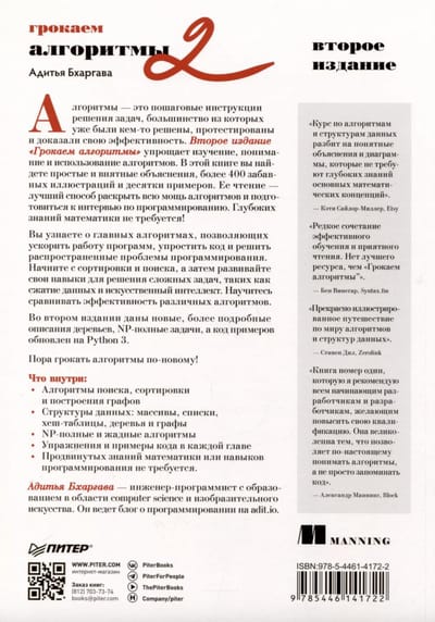Алгоритмы — это пошаговые инструкции решения задач, большинство из которых уже были кем-то решены, протестированы и доказали свою эффективность. Второе издание «Грокаем алгоритмы» упрощает изучение, понимание и использование алгоритмов. В этой книге вы найдете простые и внятные объяснения, более 400 забавных иллюстраций и десятки примеров. Ее чтение — лучший способ раскрыть всю мощь алгоритмов и подготовиться к интервью по программированию. Глубоких знаний математики не требуется!
