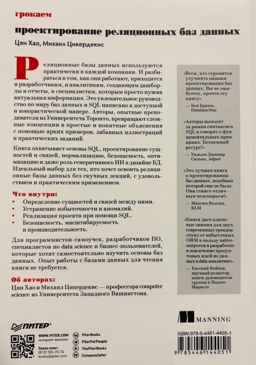 Книга охватывает основы SQL, проектирование сущностей и связей, нормализацию, безопасность, оптимизацию и даже роль генеративного ИИ в дизайне БД. Идеальный выбор для тех, кто хочет освоить реляционные базы данных без скучных лекций, с удовольствием и практическим применением.